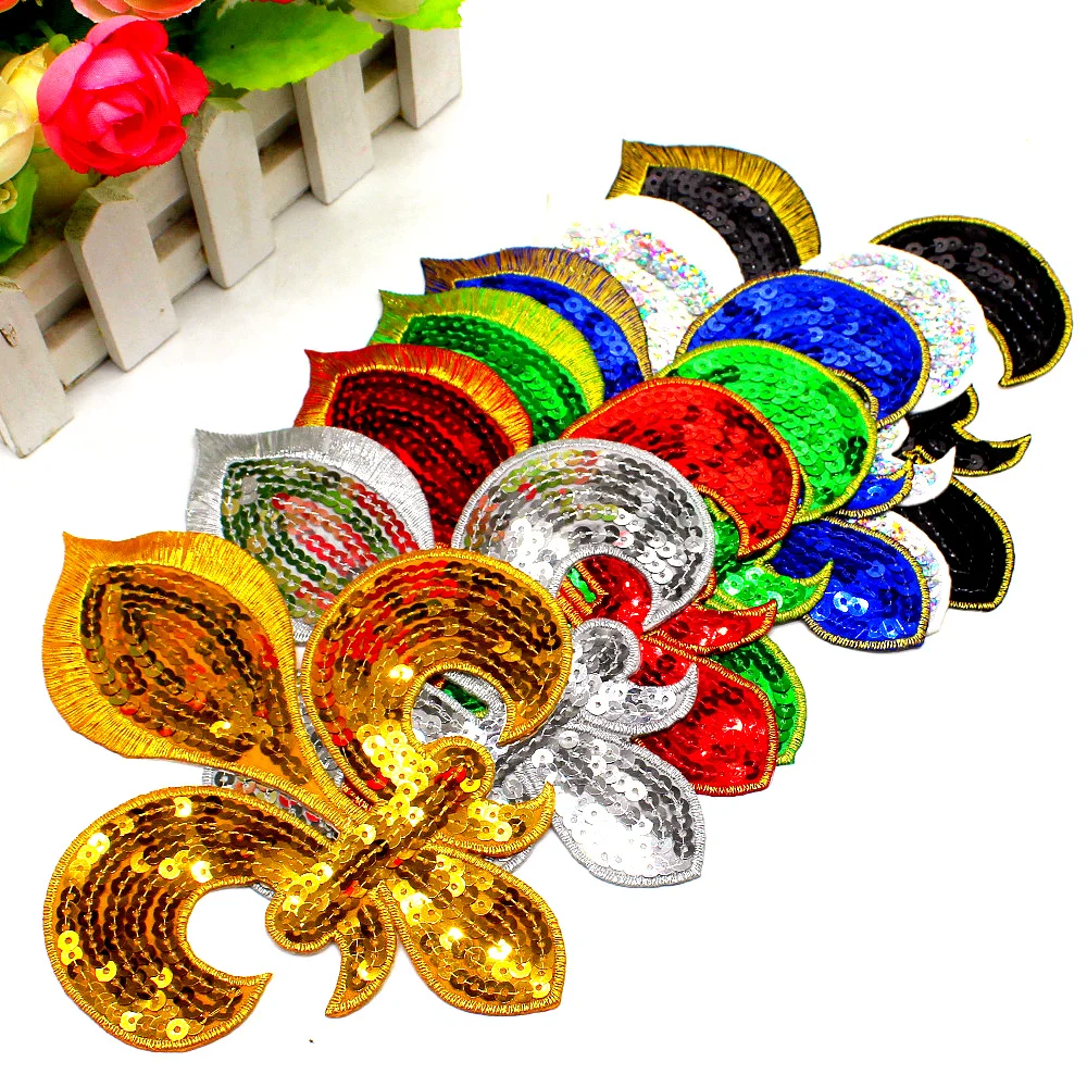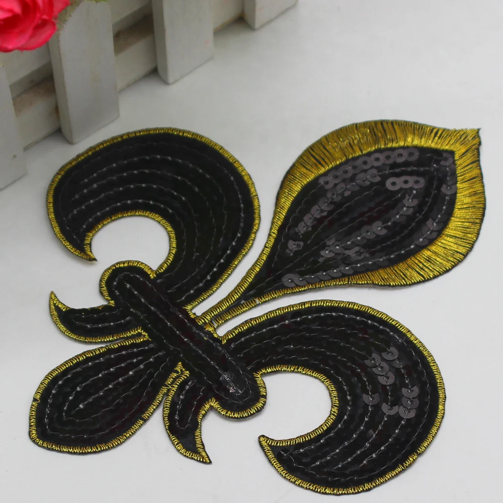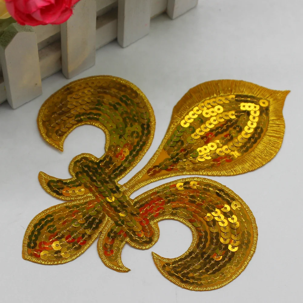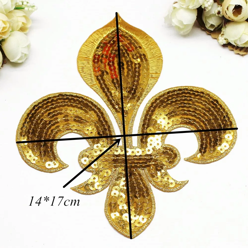 Геральдическая Лилия Цветок 3D лотоса с блестками и аппликацией с золотистым расшитым узором патч железа на нашивки/2 предмета в одной партии 16,5*14 см