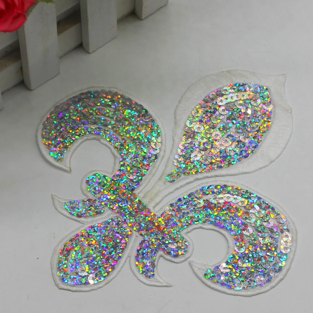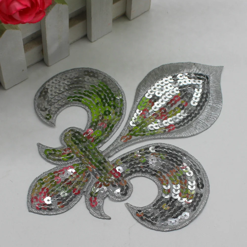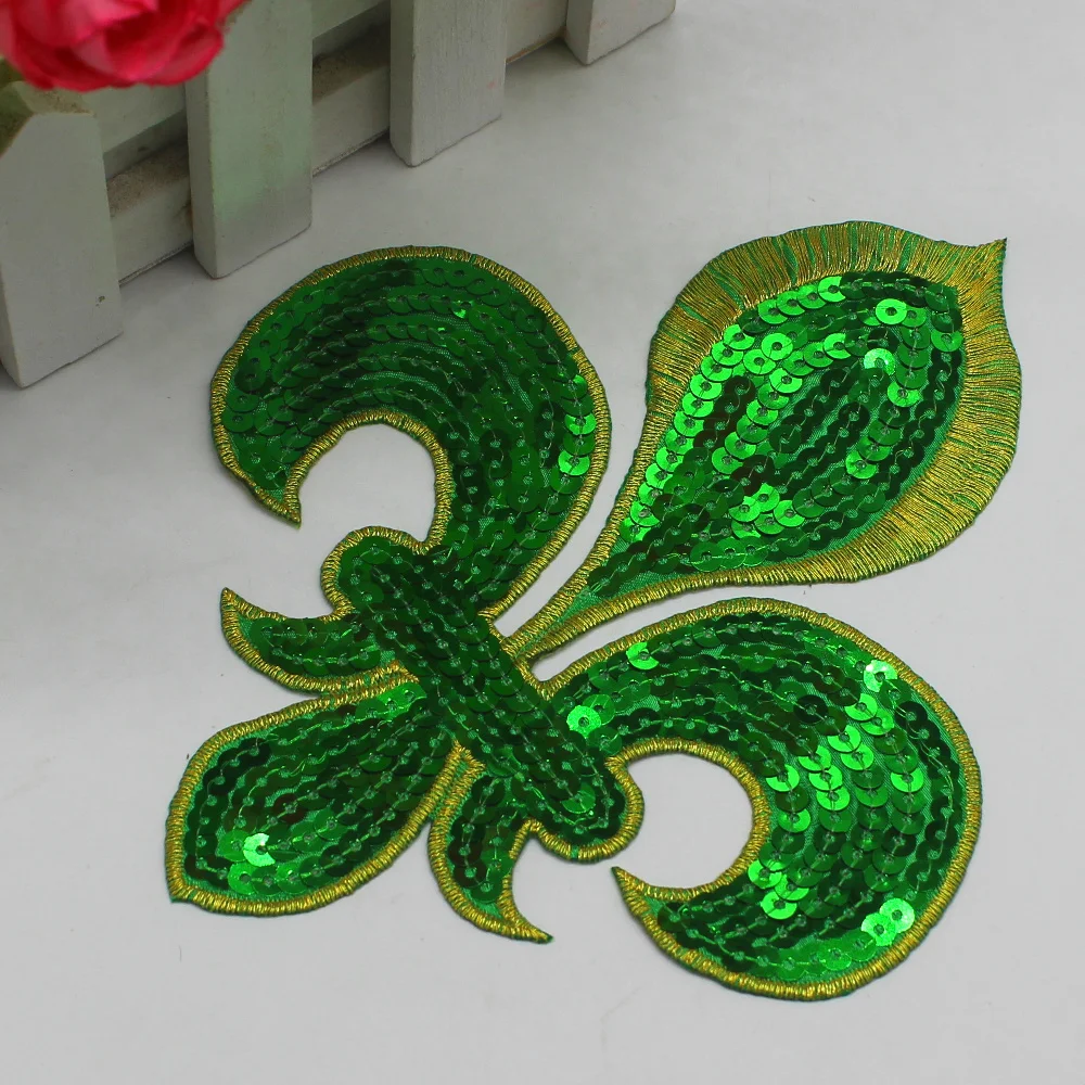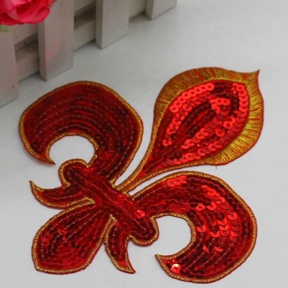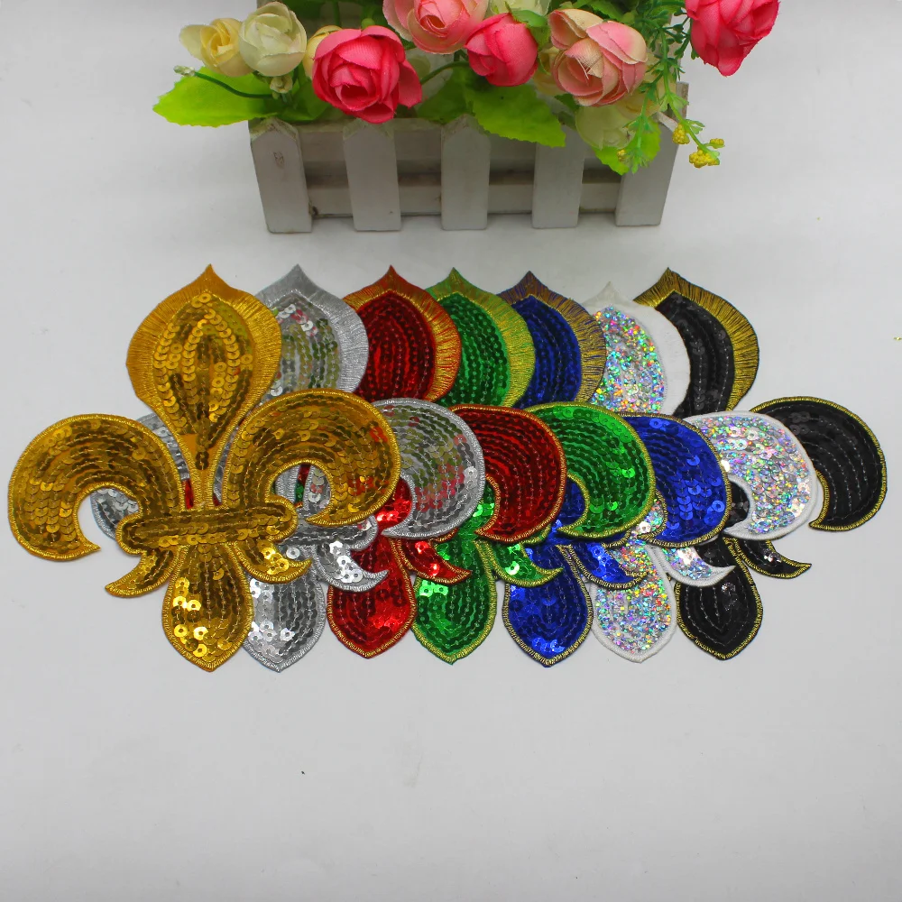 Геральдическая Лилия Цветок 3D лотоса с блестками и аппликацией с золотистым расшитым узором патч железа на нашивки/2 предмета в одной партии 16,5*14 см