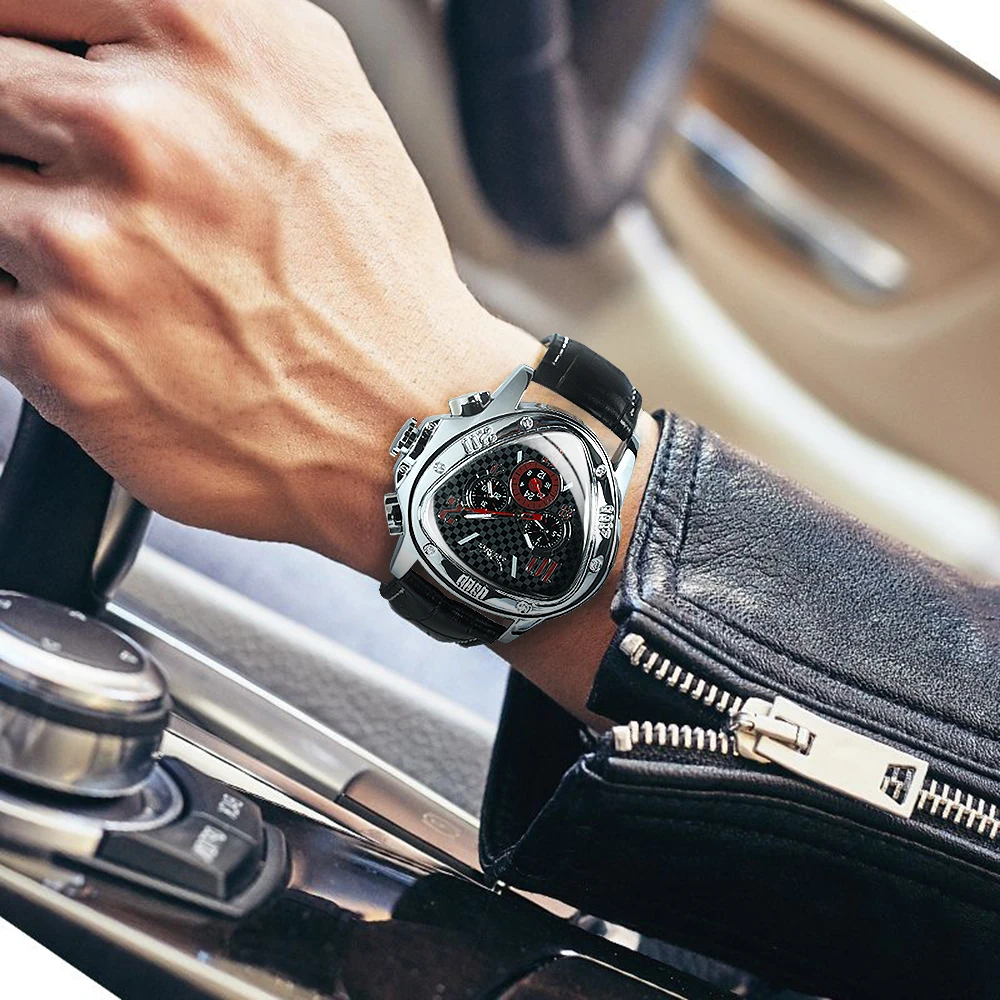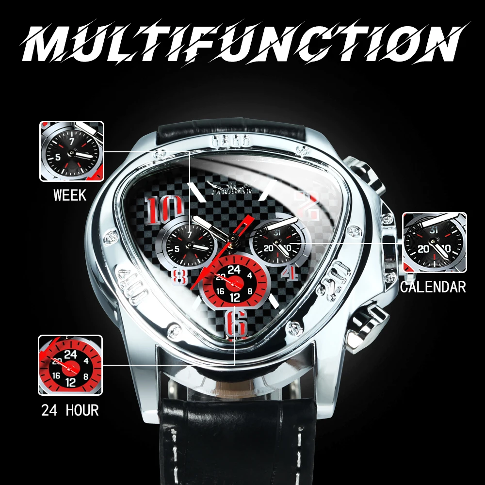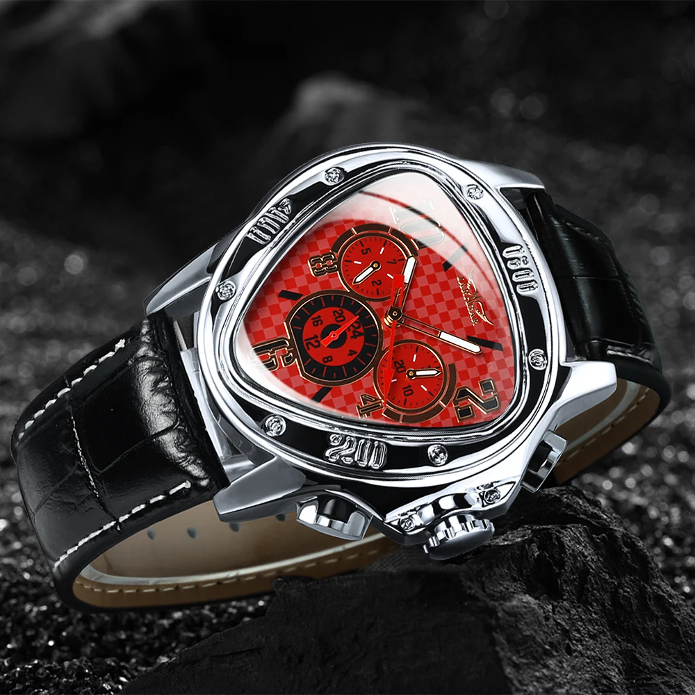 Jaragar Мужские автоматические механические наручные часы спортивные гоночные пилоты из натуральной кожи повседневные Роскошные брендовые геометрические часы треугольник часы