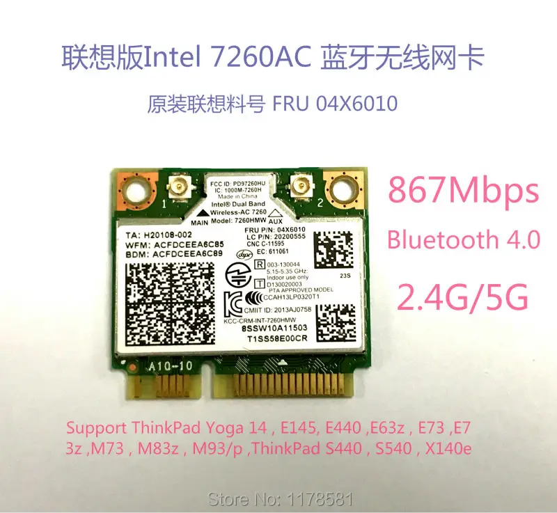 Wi-Fi карта intel 7260ac intel 7260HMW, 2,4 ГГц867 Мбитс, 802.11ac, Wi-Fi модуль Wlan карта для ThinkPad S440 S550 E73z M83z E440