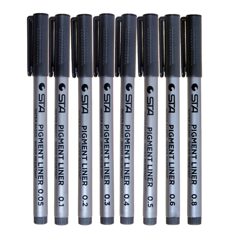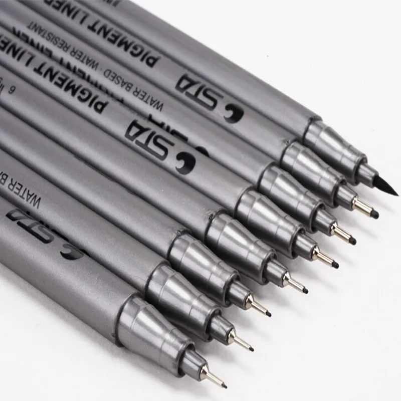 Набор чернильных маркеров STA 9 микрон, кончики 0,05 0,1 0,2 0,3 0,4 0,5 0,6 0,8 мм, кисть, черные чернила, идеально подходят для рисования и письма