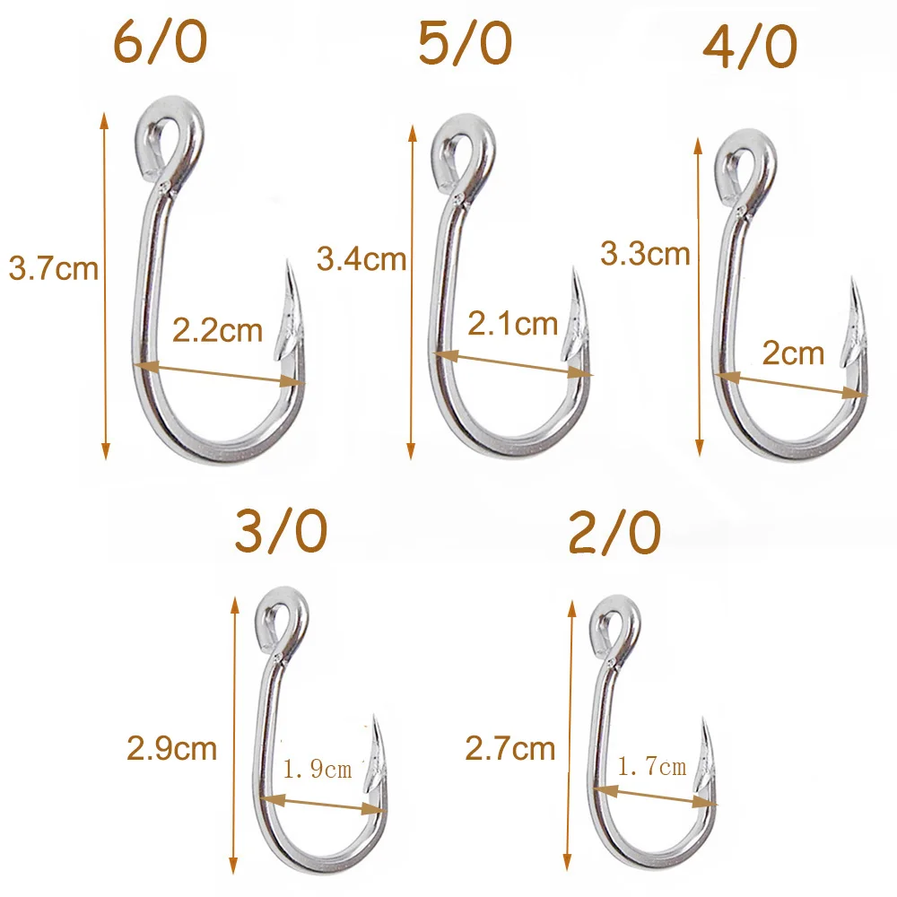 Easy Catch 100 шт., рыболовные крючки из нержавеющей стали 10884, белые, большие, для ловли рыбы, приманка для тунца, размеры 30, 40, 50, 60, 70, 80, 90