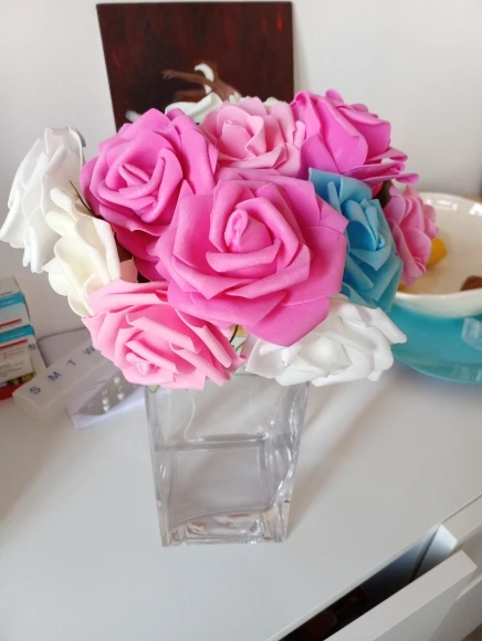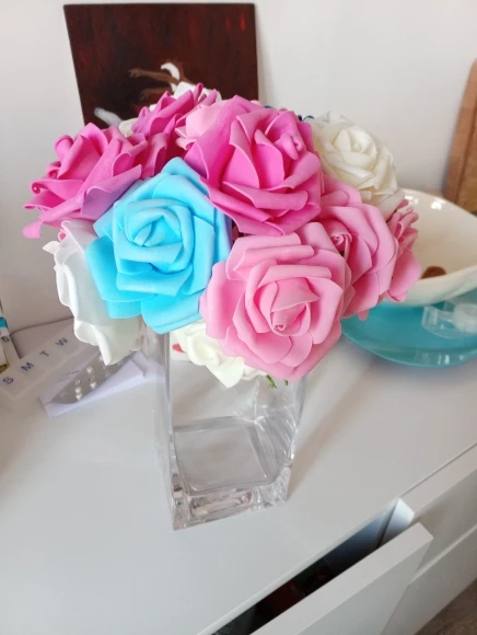 Красивые розы. Не выглядят фальшивыми, даже если они искусственные. Быстрая доставка. Спасибо продавцу.