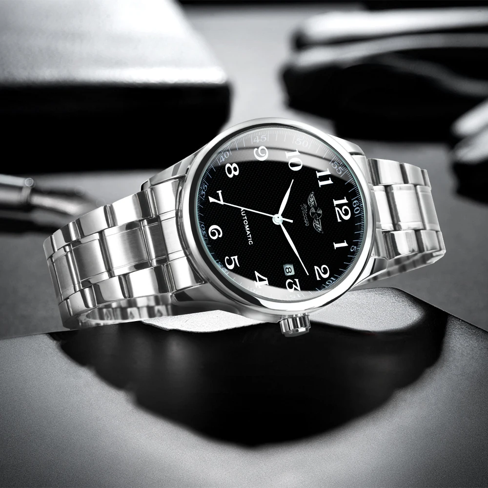 Часы мужские механические Автоматические, модные деловые классические, с кожаным ремешком, с календарем и датой, с белым циферблатом