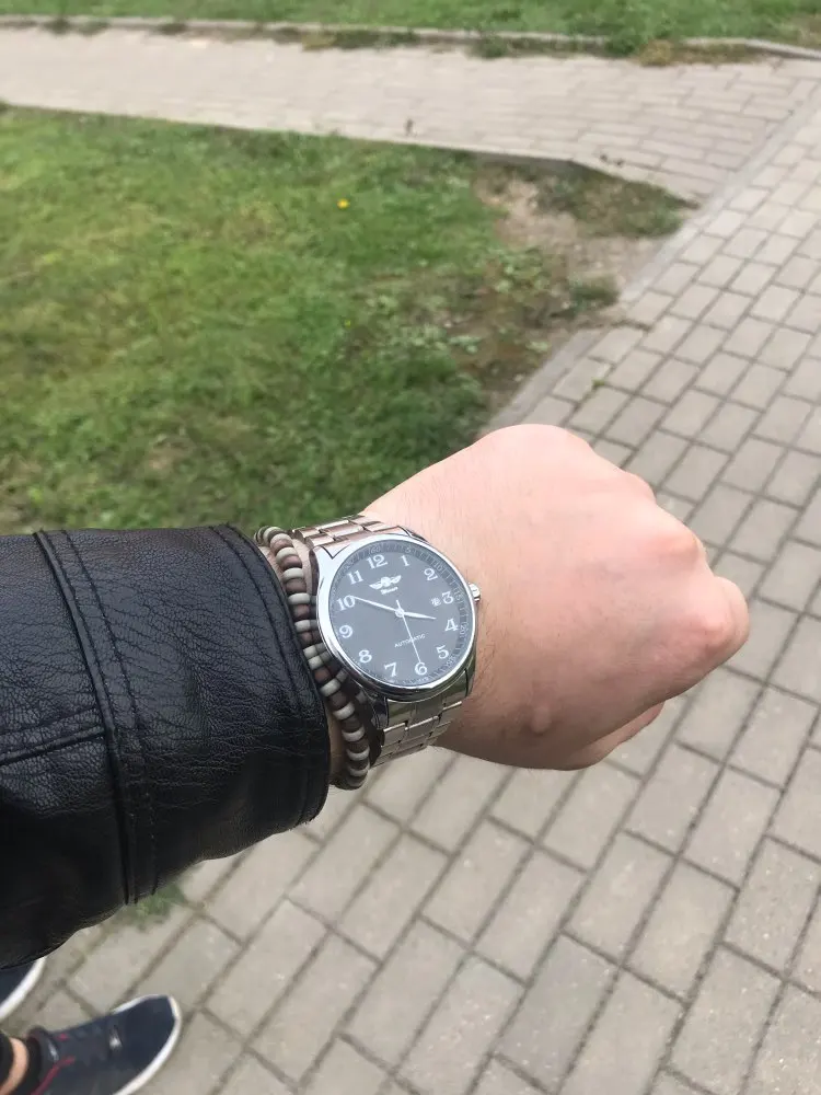 Поставил 5 звёзд из-за того, что нет возможности поставить 1 звезду за товар. Часы пришли довольно быстро, но с первого же дня начали отпотевать без намачивания. На второй день бережного использования треснуло стекло примерно на 1,5см. Продаван вернул только 50% стоимости покупки. А так часы хорошие- механика с автоподзаводом.