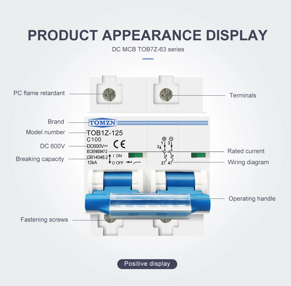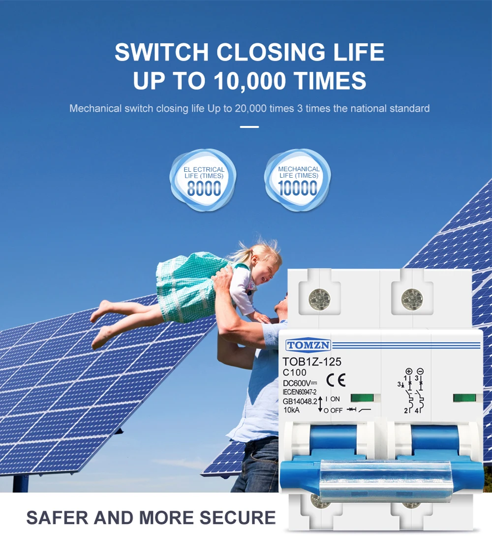2P 125A DC 600V Автоматический выключатель для PV системы C кривой