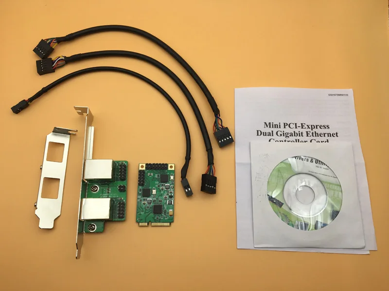 Посылка:1 гигабитный Ethernet Mini PCI-Express Card-основная карта1 гигабитный Ethernet мини PCI-Express карта-дочь1 x Руководство пользователя1 x CD драйвер2 x 10-контактный сетевой кабель2 x 4-контактный светодиодный кабеля1 x низкопрофильный кронштейн