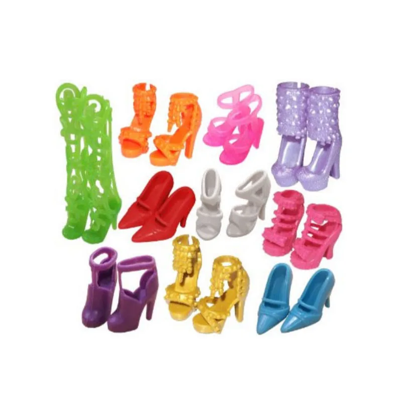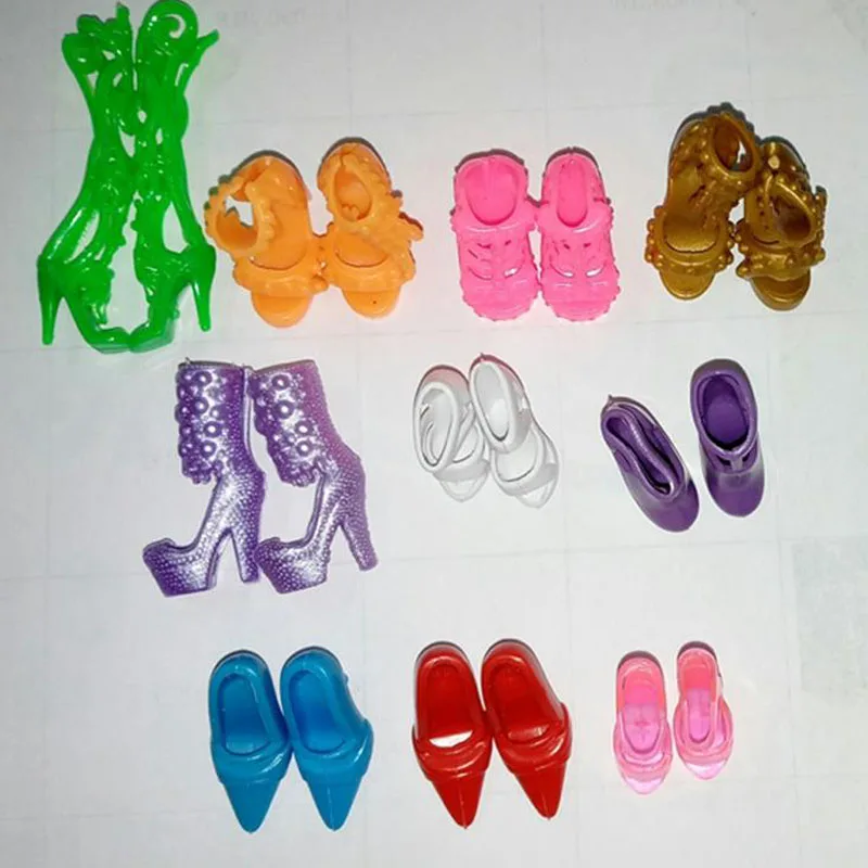 10 пар кукольных ботинок для куклы Барби, смешанный стиль, босоножки на высоком каблуке, разноцветные разнообразные туфли, аксессуары, детские рождественские игрушки DIY
