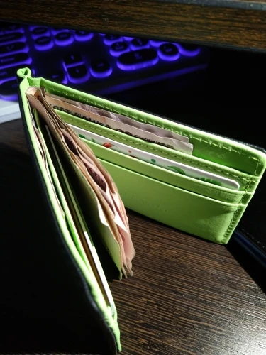 Дешевый, неплохое качество, карты держатся хорошо, большой размер для рублей!