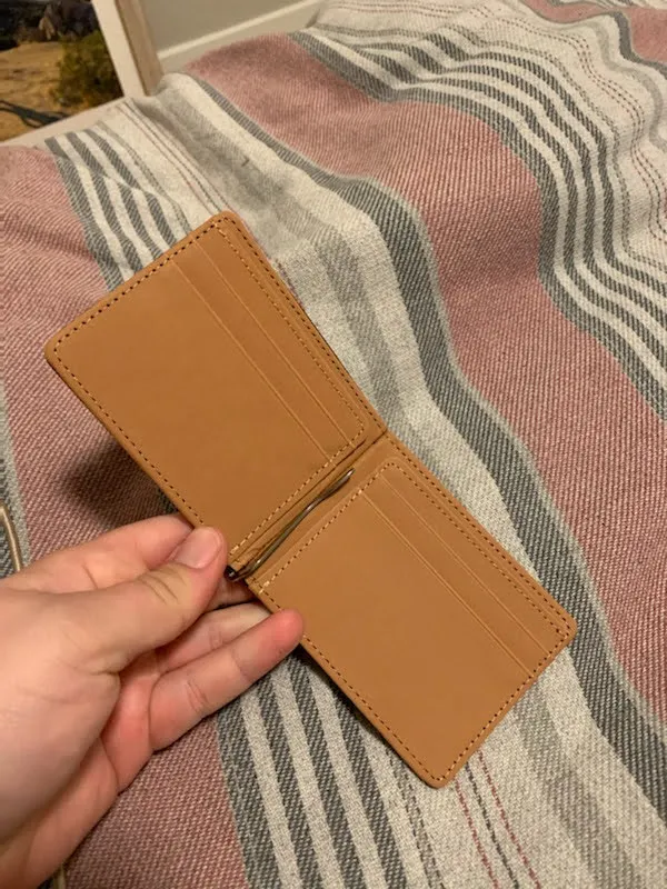 Очень хорошо сделано, материал классный на ощупь. Берите не пожалеете. Единственное маленькое огорчение, это небольшая вмятина на внутренней стороне, видимо посылку чем то придовили. Хотя не факт, что она ни появится после, если носить в карманах джинс.