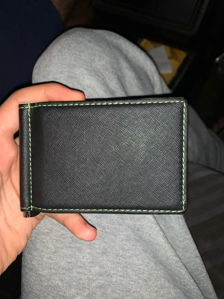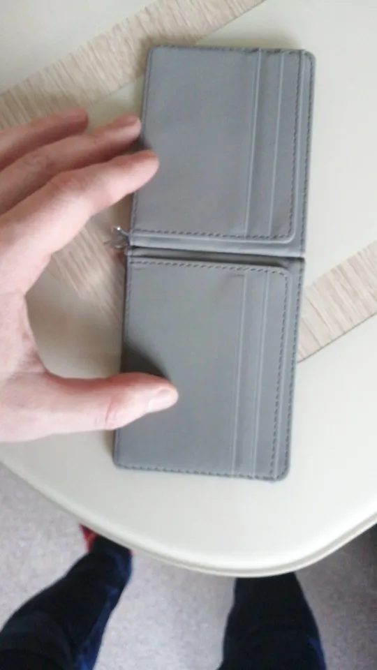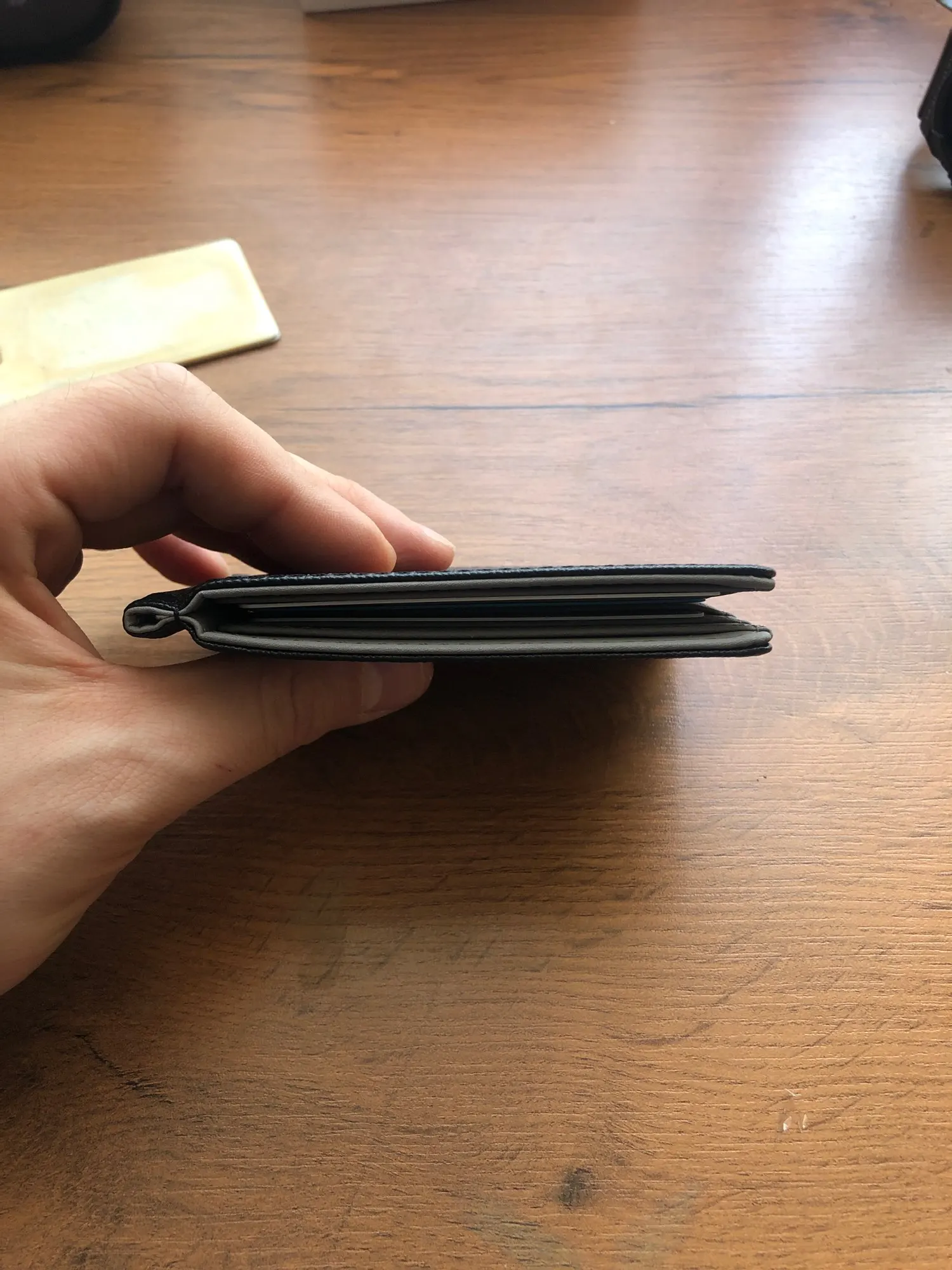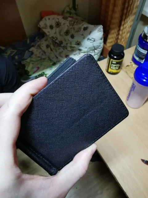 Товар пришел очень быстро, довольно хорошее качество по цене, он тонкий и вполне подходит, я думал, что буду слишком туго для того, чтобы быть таким тонким, но нет, деньги легко поступают и выпадают, так же, как и карты.