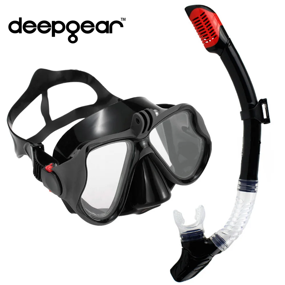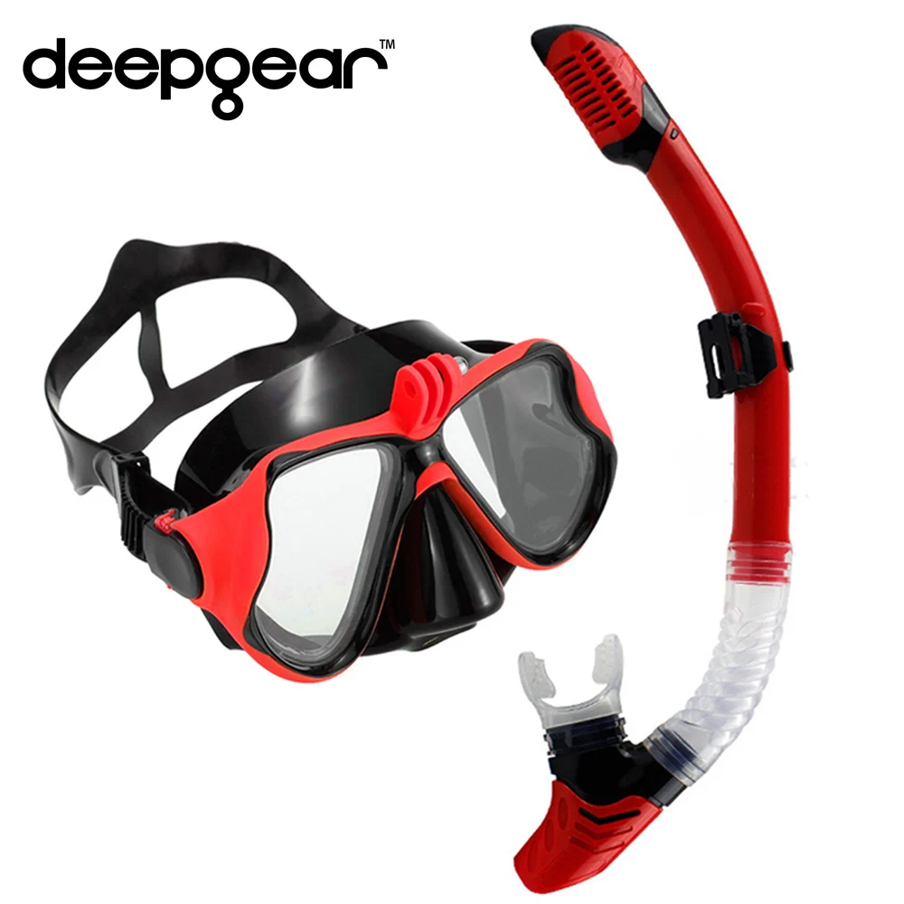 Набор для дайвинга DEEPGEAR для близорукости, маска для подводного плавания с креплением для камеры, черная силиконовая маска для дайвинга, для взрослых, оптическая маска для подводного плавания для близорукости
