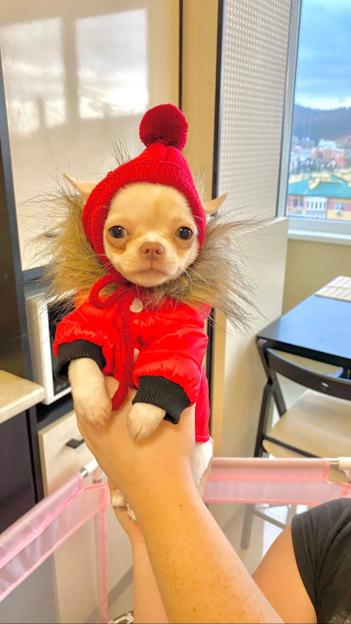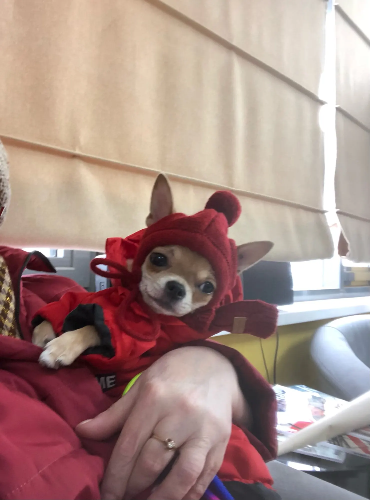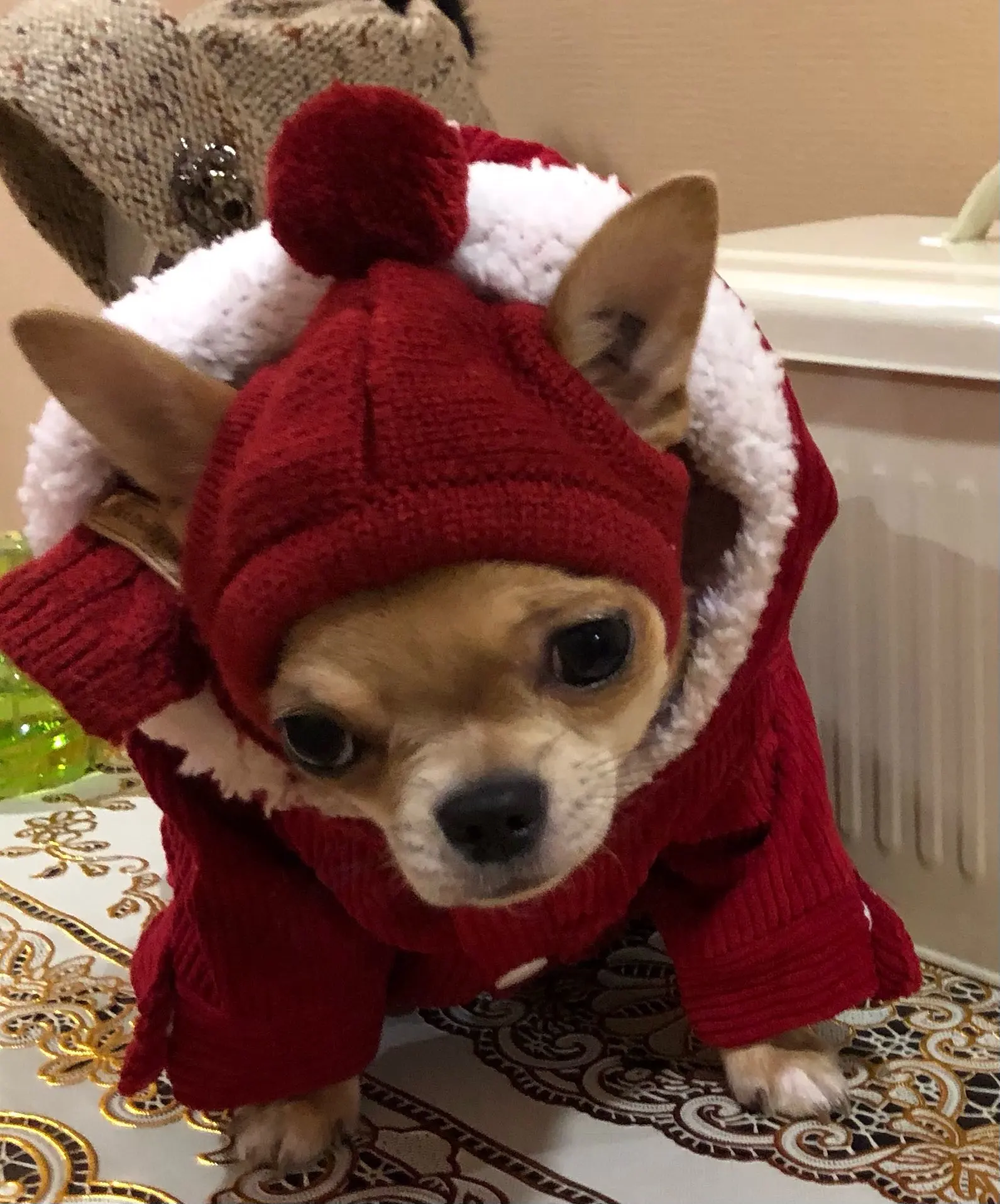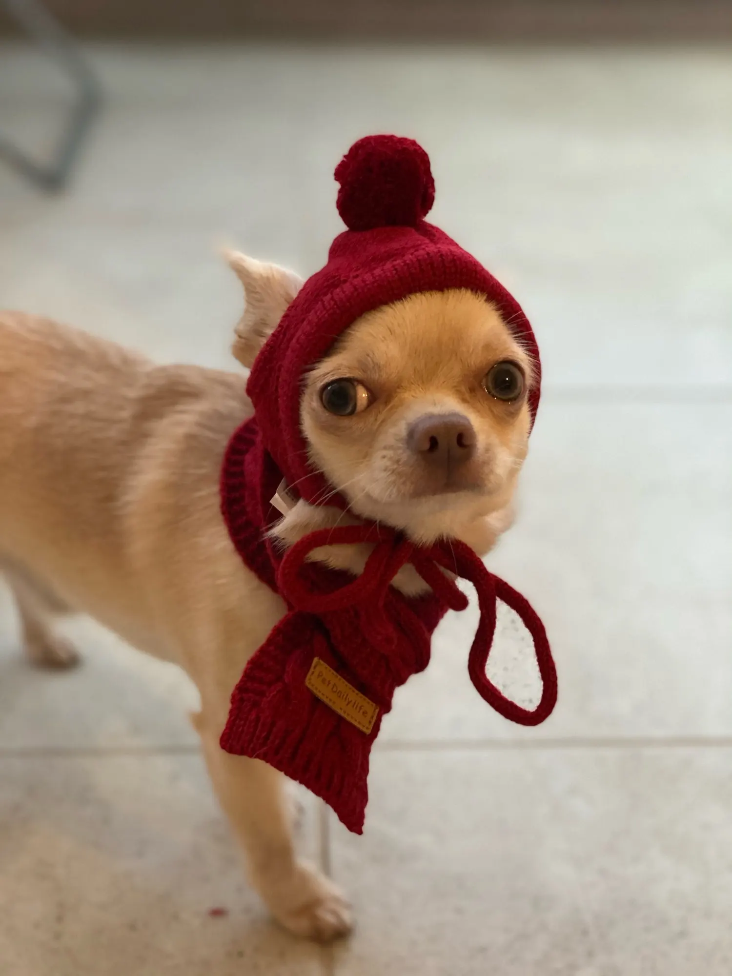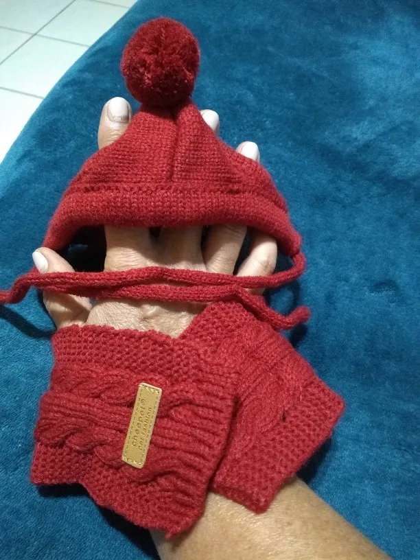 Шапочка очень смешная,купила просто так)навряд ли будем носить.Для папильона не очень подходит на уши-бабочки,отверстия маловаты.Тепла от этой шапки особо не будет.Шарфик очень коротенький на очень тоненькую шейку. Доставка быстрая,15 дней до Омска