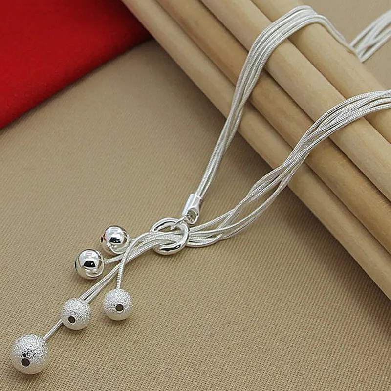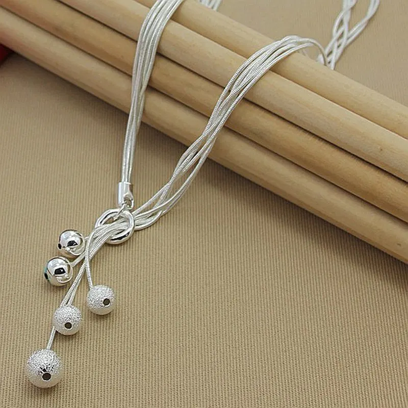 Цепочка DOTEFFIL из стерлингового серебра 925 пробы с пятью змеиными цепочками, Женская цепочка с шариками из матовых гладких бусин для свадьбы, помолвки, модные ювелирные украшения