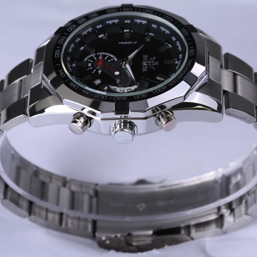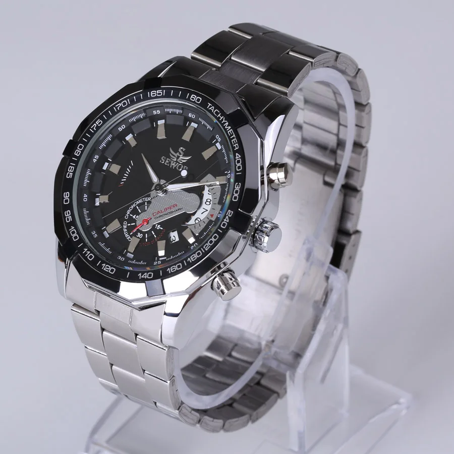 2017 бренд SEWOR, автоматические механические часы с двойным секундным стрелком, модные мужские часы под платье, полностью стальные спортивные мужские часы