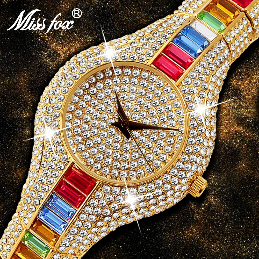 MISSFOX Mix багет женские часы с бриллиантами роскошные женские золотые часы противоударные водонепроницаемые маленькие женские часы s для женских часов