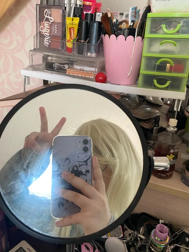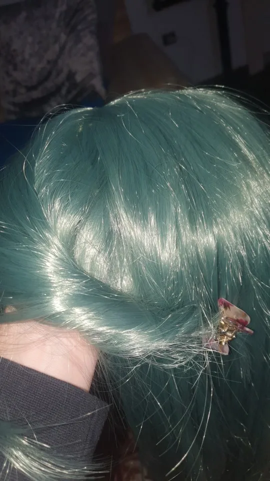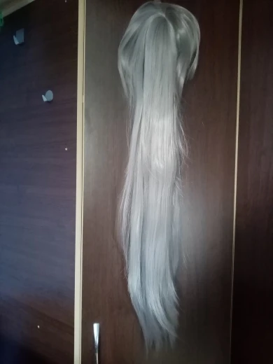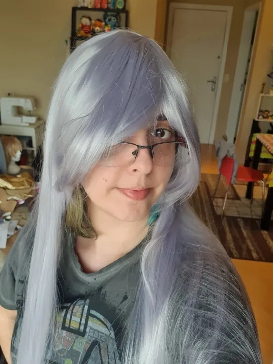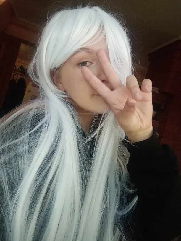 думала будет немного светлее, скорее серебристый, а не прям серый-серый. но в общем и целом не расстроена - для первого в моей жизни парика все хорошо)