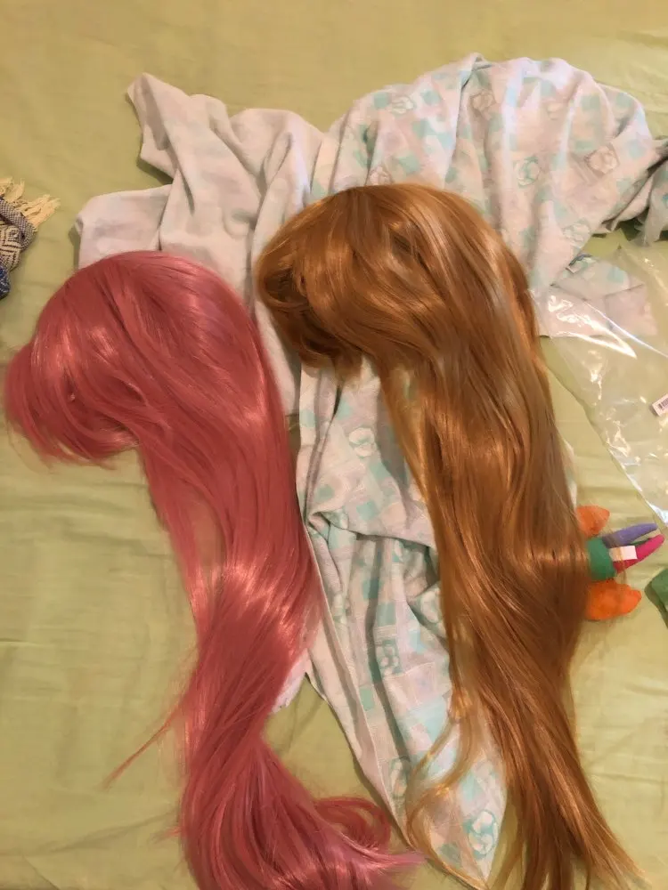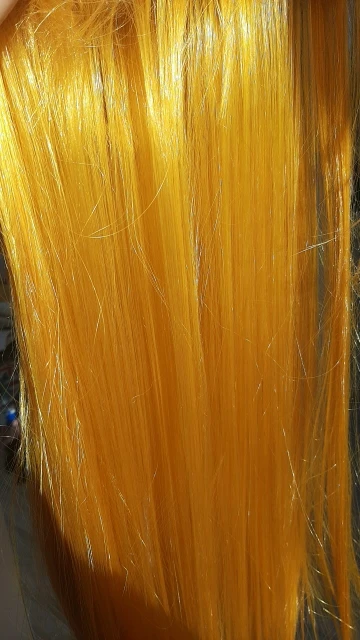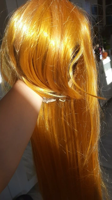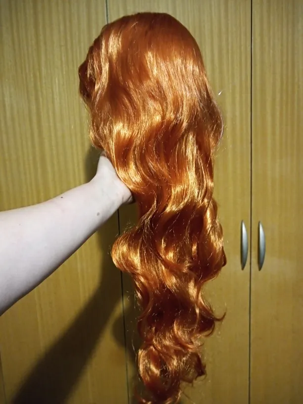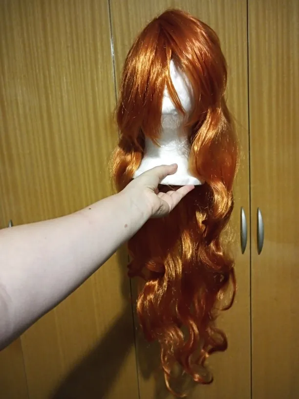 Быстрая доставка. Цвет выглядит как на картинке (на фотографиях немного больше orange). Парик выглядит так, как на фото. Фотографии были сделаны сразу после получения товара (он не матовый/стилизованный).