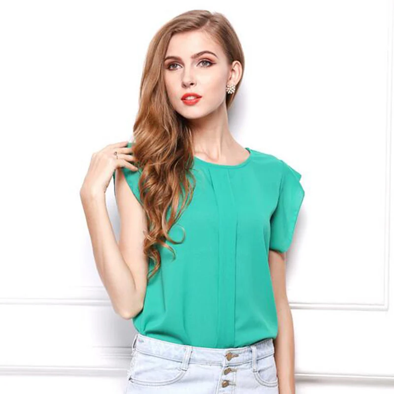 Женская шифоновая блузка с рюшами, летняя блузка с короткими рукавами, Подарочная блузка для офиса