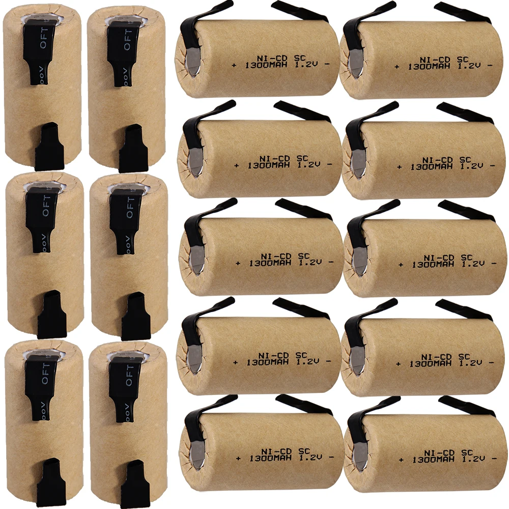 Реальная емкость 12 шт. SC аккумулятор 1300 мАч 1,2 в NICD SUBC бат...