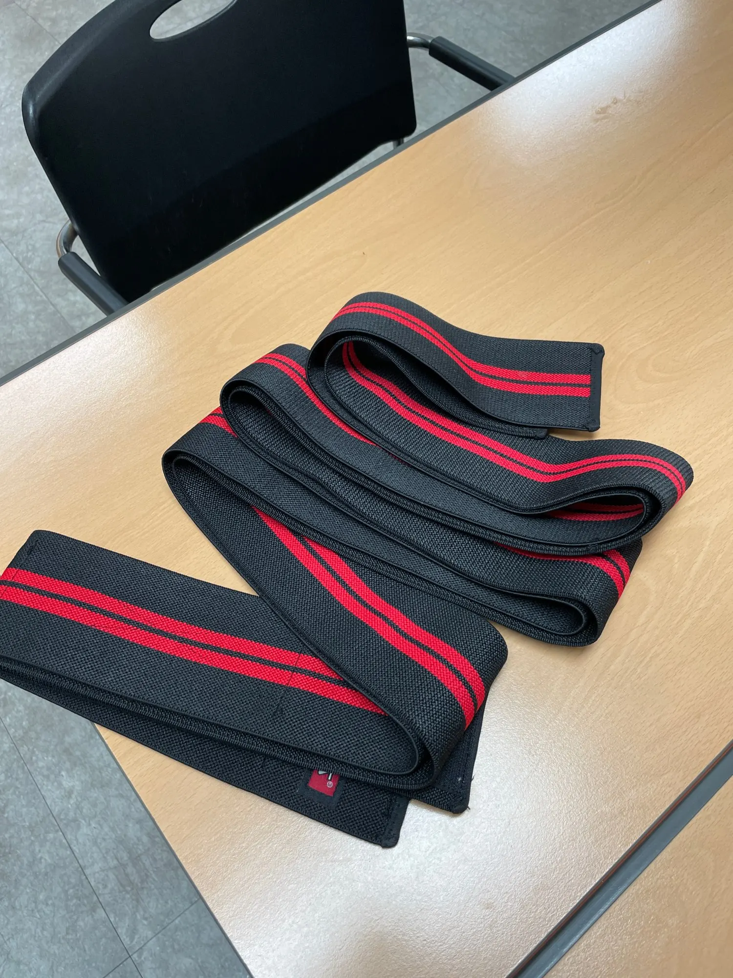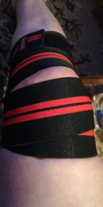 Лента огромная, почти два метра браслета. Эластичный, прочный. Поставляется с липучкой. Много глаз, потому что вы должны заказать две единицы, по одному для каждого колена, здесь поставляется только одна единица (для одной ноги)
