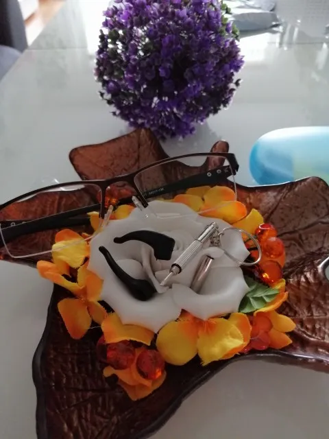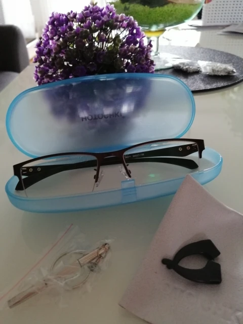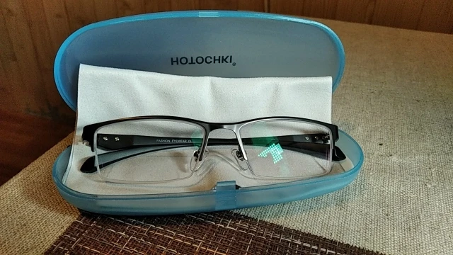 Получил заказ через 4 недели. Вроде нормально. Дужки пластиковые. Стекла стоят аккуратно. Пластмассовый футляр, салфетка, запасные упоры на нос, какие-то дополнения к дужкам, брелок-отвертка. В "воздушной" упаковке.