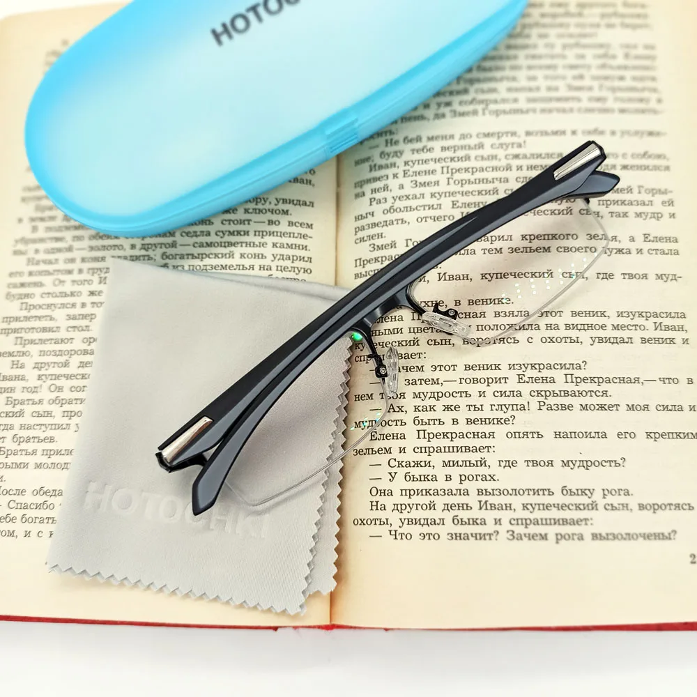 хорошие очки, сделали по рецепту, в дополнение положили отвёртку, футляр, хорошую тряпочку, запасные носовые упоры. дужки жёсткие, но сидят удобно,и в целом очки чуть тяжелее, чем ожидал.