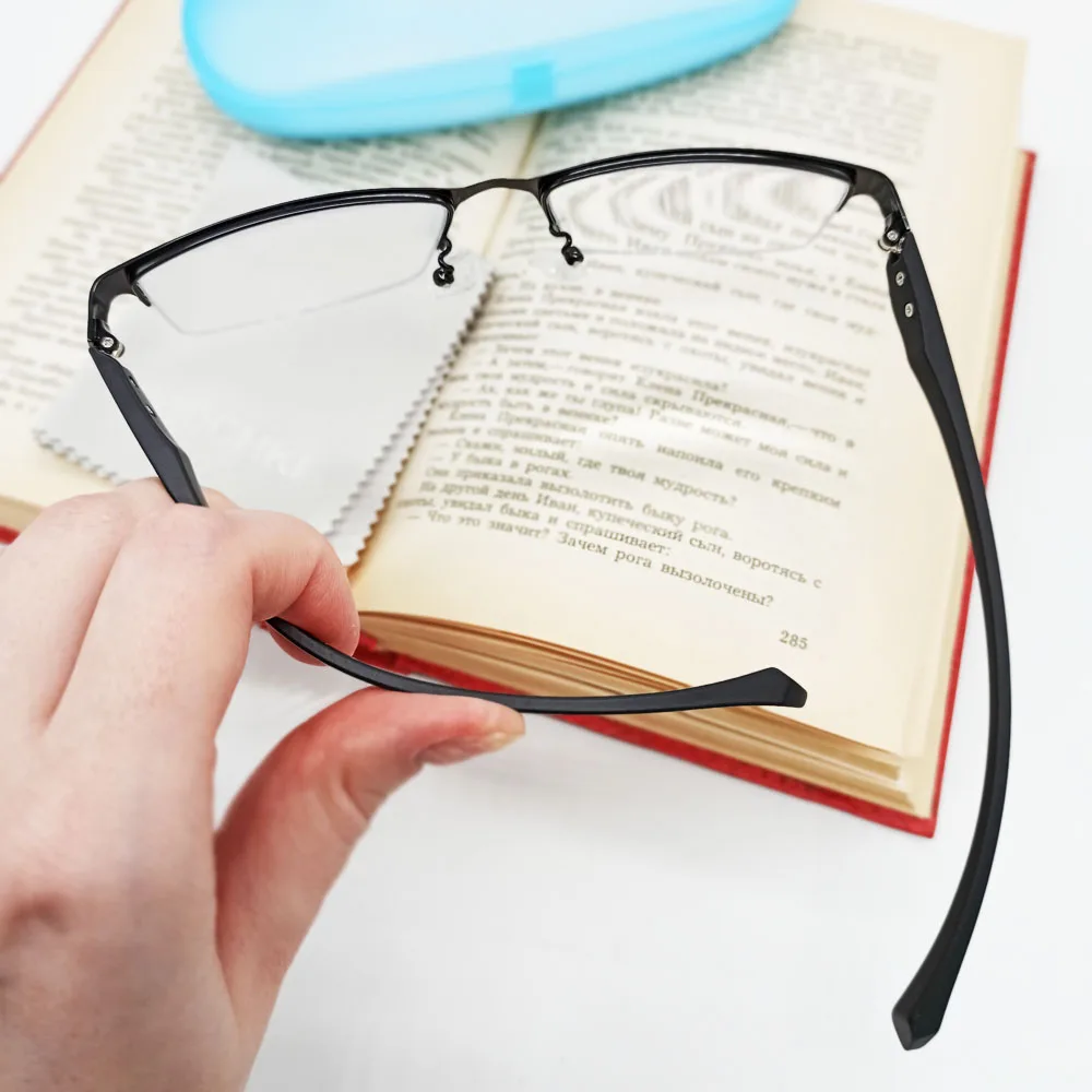 В комплекте к очкам идут твердый чехол, салфетка для протирки, набор для ремонта с отверткой и носоупорами. Материал дужек гибкий. Это продлевает срок службы очков, так как часто на пластиковой оправе образуются трещины или можно случайно ее сломать.