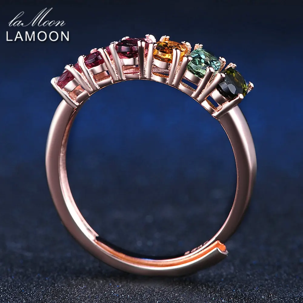Кольцо с турмалином, 6 шт., овальное, разных цветов, с покрытием из серебра 100% пробы, LMRI005, 6 шт.