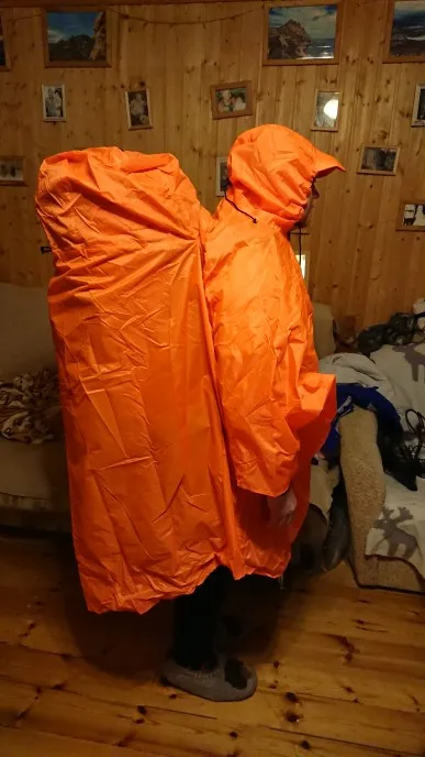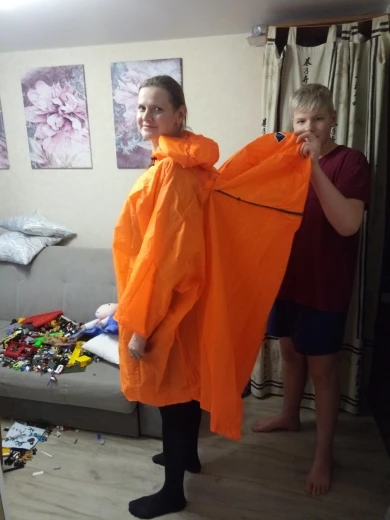 Нормальный плащ, внатяг накрывает 100-литровый рюкзак. При росте 175 очень короткие рукава, плащ с надетым рюкзаком длиной выше коленей. Слишком короткая шлевка, соединяющая фронт и тыл плаща снизу. проклейка швов норм. Продавец молодец, это первая посылка из товаров, купленных 11.11. Продавцу респект.