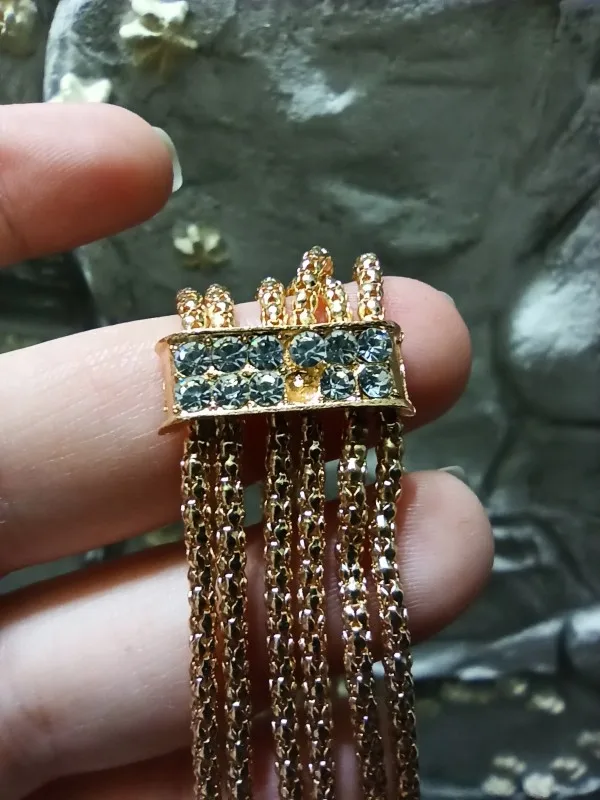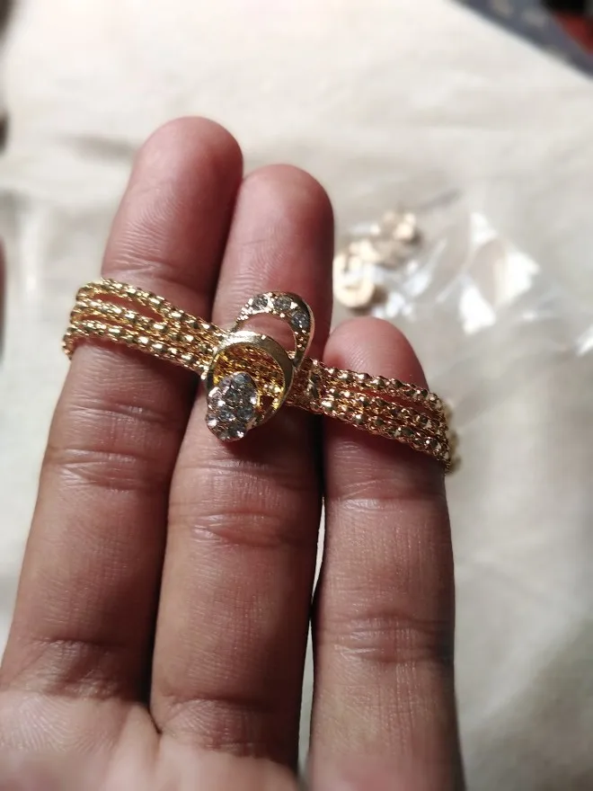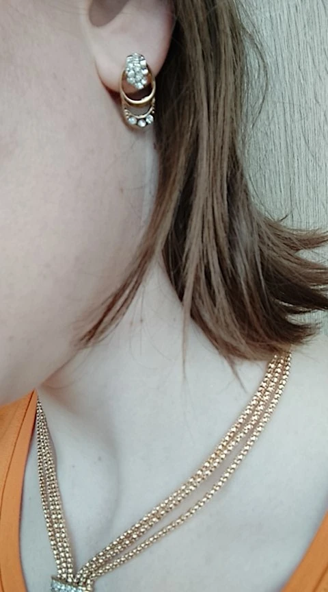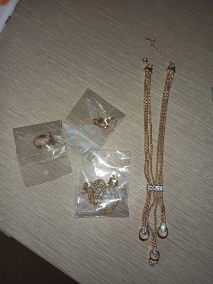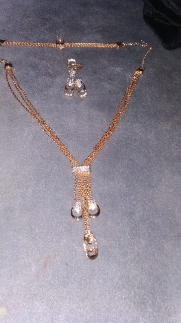 Это жесть... Колье не смогла даже применить, размер как на браслет, на шею вообще не одеть... В серьге нет половины камней, просто чем то залито, фигня полная..