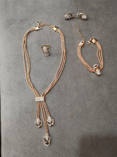 Здравствуйте, получила набор из 4 предметов, все красиво, но колье небольшого размера, прямо под горло, если девушка не крупная , то смотрится хорошо.