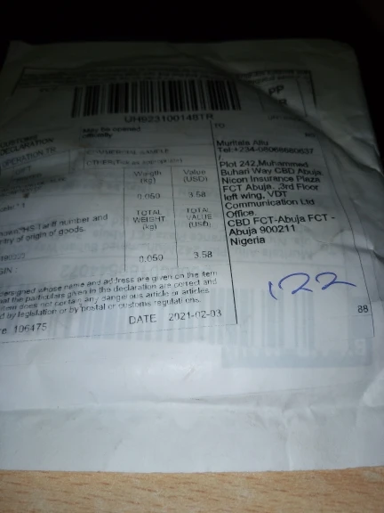 Страна: NG Доставка: Cainiao Super Economy Global 08.07.2021