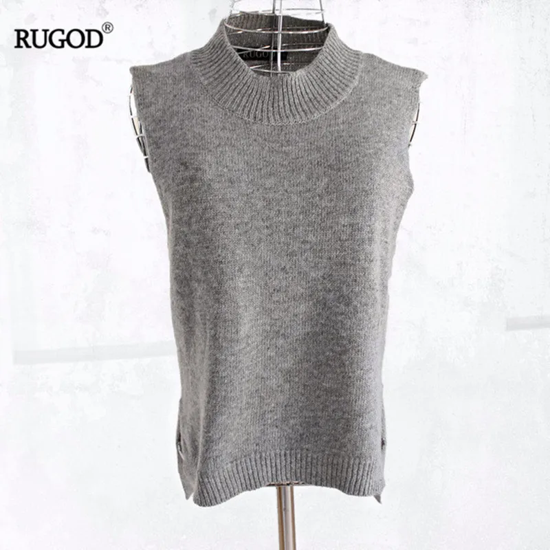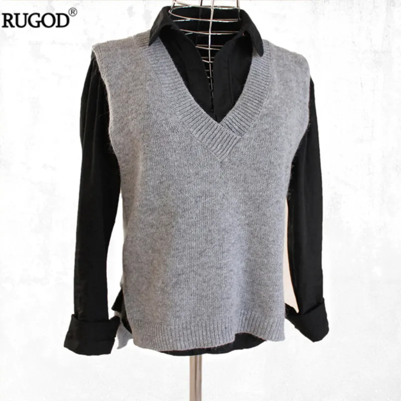 Женский кашемировый жилет RUGOD, хлопковый жилет с двойным воротником без рукавов Вязанный жилет размера плюс, весна-зима 2019