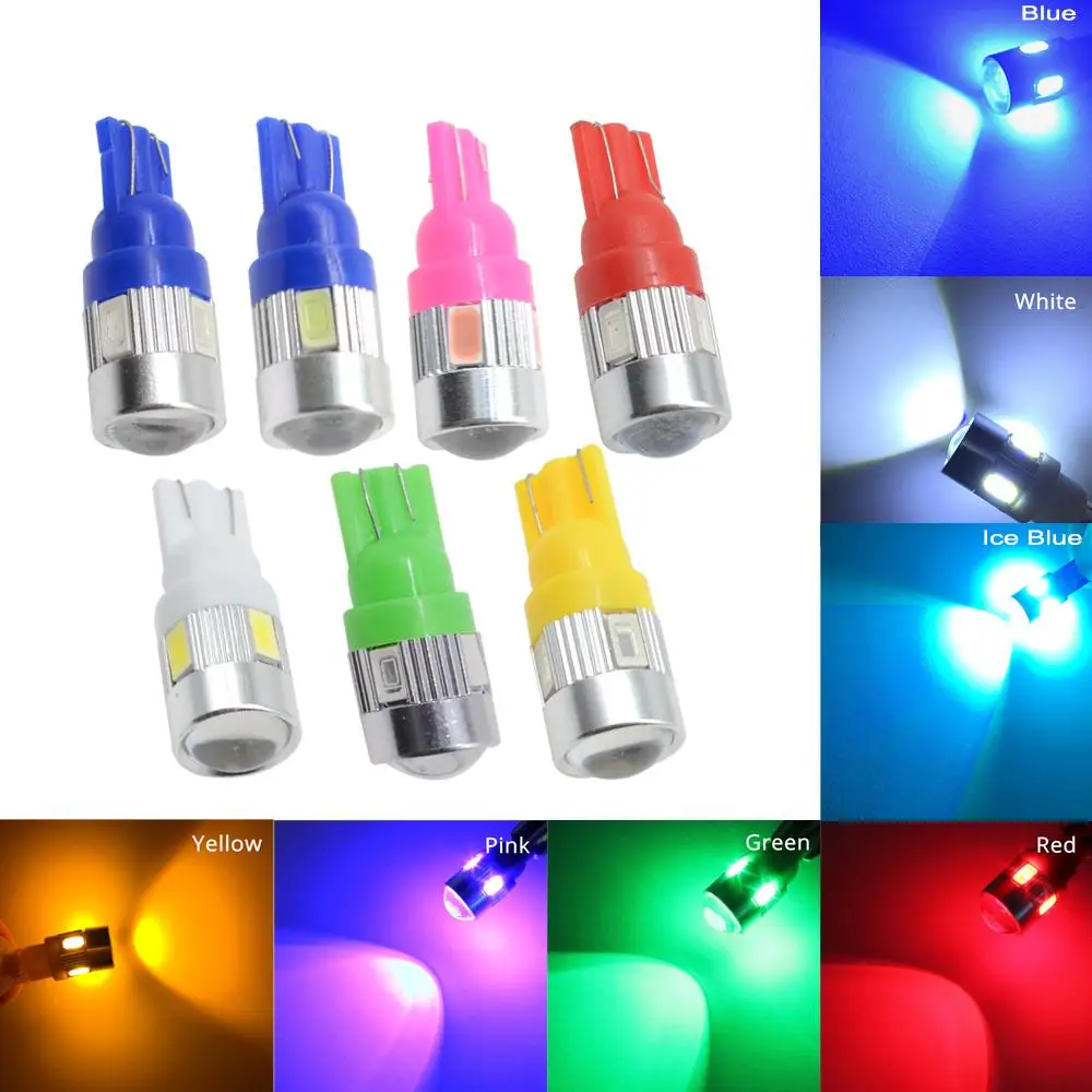 10X Ксеноновые белые, синие, красные, зеленые, желтые 6SMD 5630 линзы клиновидные Твердые резервные лампы боковой маркер парковочный задний светильник авто Led Cob светильник