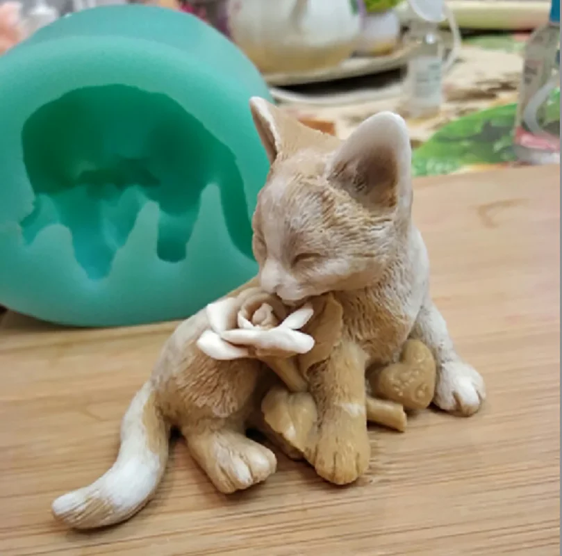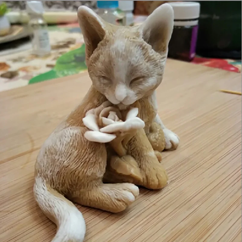 3d цветок милый кот ручной работы Мыло Свеча для украшения торта силиконовые формы DIY форма кошки