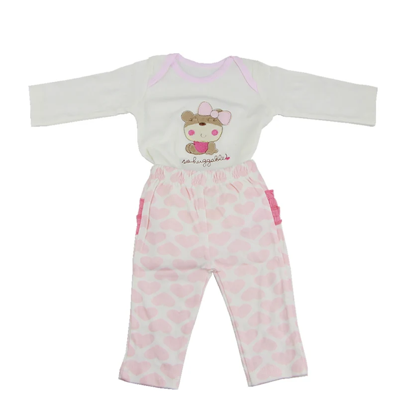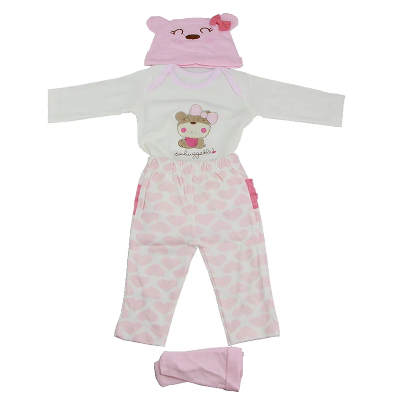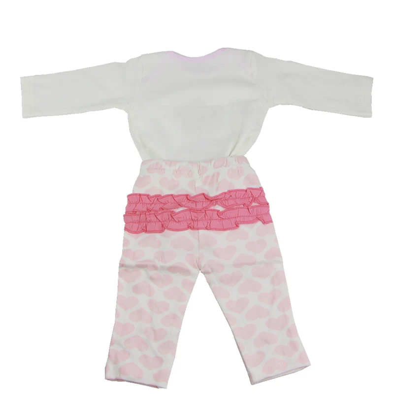 В партии, с милым рисунком, Одежда для кукол ручной работы костюм подходит для 22-23 дюймов перерожденные куклы младенцы, розового цвета с сердечком и пять предметов натуральный хлопок детский подарок