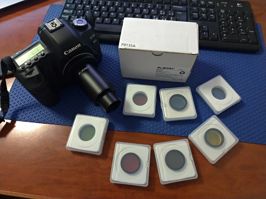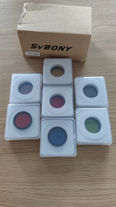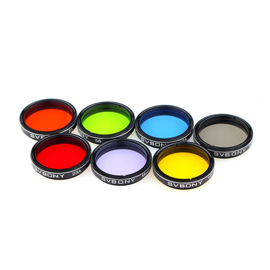 Этот 1,25-дюймовый набор фильтров Svbony включает в себя лунный фильтр, фильтры CPL и пять цветных фильтров: красный, оранжевый, желтый, зеленый, синий.