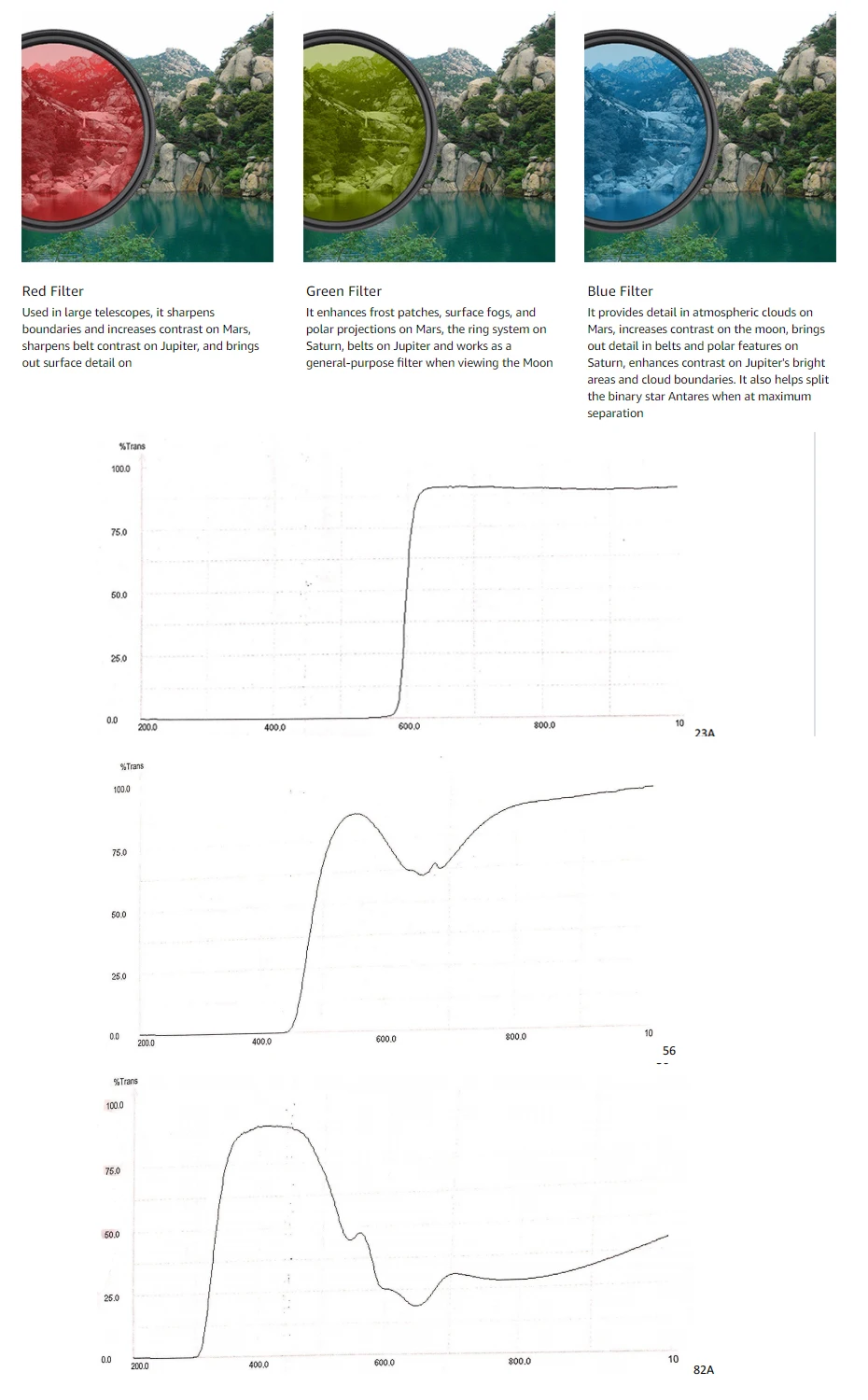 CPL-фильтр: он отфильтровывает рассеянный свет, позволяет вырезать отражения и видеть детали позади них. Он снижает яркость лунной поверхности, чтобы вы могли наслаждаться оптимальным контрастом луны.Фильтр луны и свечения небаУстранение дыма от уличного света для получения более естественных цветов и реалистичного изображенияОранжевый фильтрОн помогает увеличить контраст между светлыми и темными областями, проникает через облака и помогает обнаруживать пыльные бури на Марсе. Это также помогает выделить Большое красное пятно и усилить контраст на Юпитере.Желтый фильтрЭто помогает в наблюдении за Марсом, выделяя полярные ледяные шапки, усиливая синие облака в атмосфере, увеличивая контраст и делая районы пустыни ярче. Он также усиливает красные и оранжевые элементы на Юпитере и Сатурне и затемняет синие фестоны около экватора Юпитера.Красный фильтрИспользуемый в больших телескопах, он сужает границы и увеличивает контраст на Марсе, усиливает контраст поясов на Юпитере и выявляет детали поверхности наЗеленый фильтрОн усиливает наледи, поверхностные туманы и полярные проекции на Марсе, систему колец на Сатурне, пояса на Юпитере и работает как универсальный фильтр при просмотре Луны.Синий фильтрОн обеспечивает детализацию атмосферных облаков на Марсе, увеличивает контраст на Луне, выявляет детали в поясах и полярных деталях на Сатурне, усиливает контраст ярких областей Юпитера и границ облаков. Это также помогает разделить двойную звезду Антарес при максимальном расстоянии друг от друга.