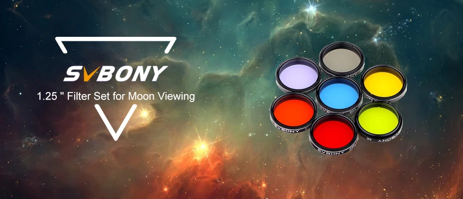 SVBONY 1,25-дюймовый лунный фильтр + фильтр CPL + комплект пятицветных фильтров для улучшения обзора Луны и планет Лучше всего снижает световое загрязнение