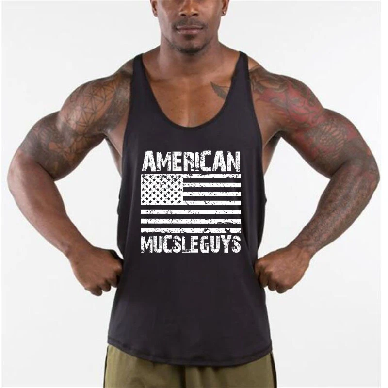 Мужские майки для фитнеса Muscleguys с принтом американского флага США, одежда для спортзала, рубашки для бодибилдинга