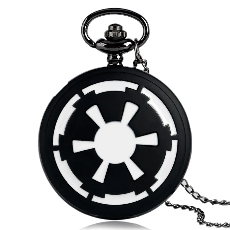 Бесплатная доставка Звездные войны Галактическая Империя Crest Круглый кварцевые карманные часы гладкий черный тонкий брелок часы Для мужчин Для женщин подарок