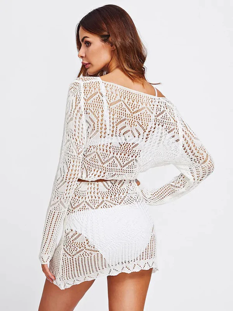 Летнее сексуальное кружевное вязаное пляжное платье, женский белый прозрачный купальник, накидка на купальник, мини-платья