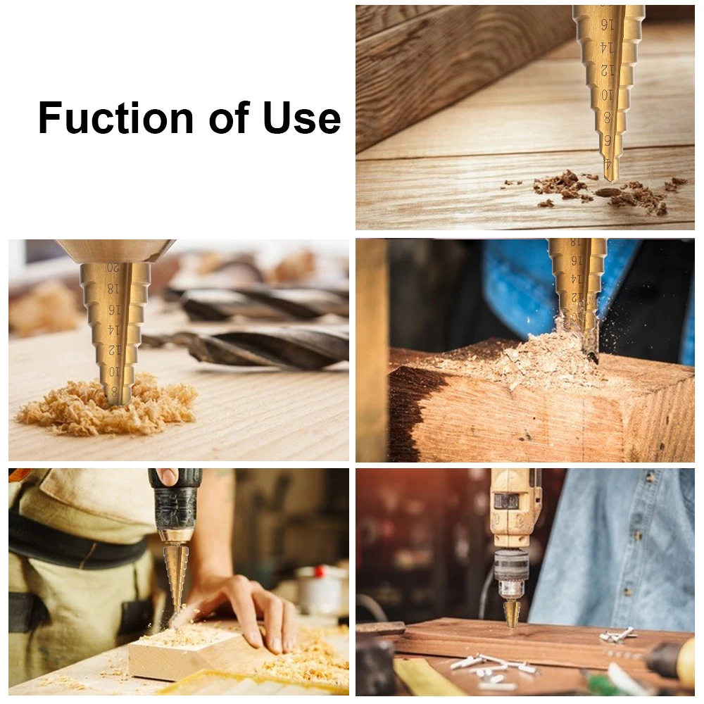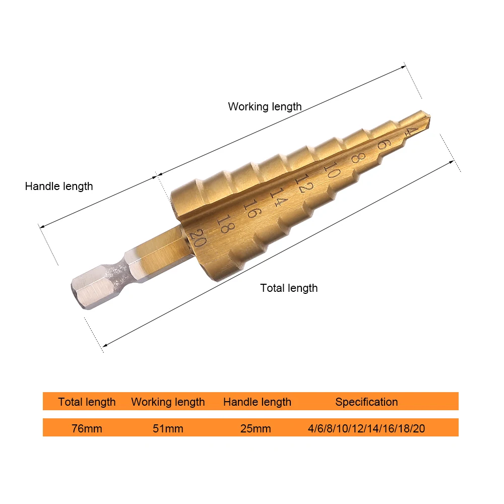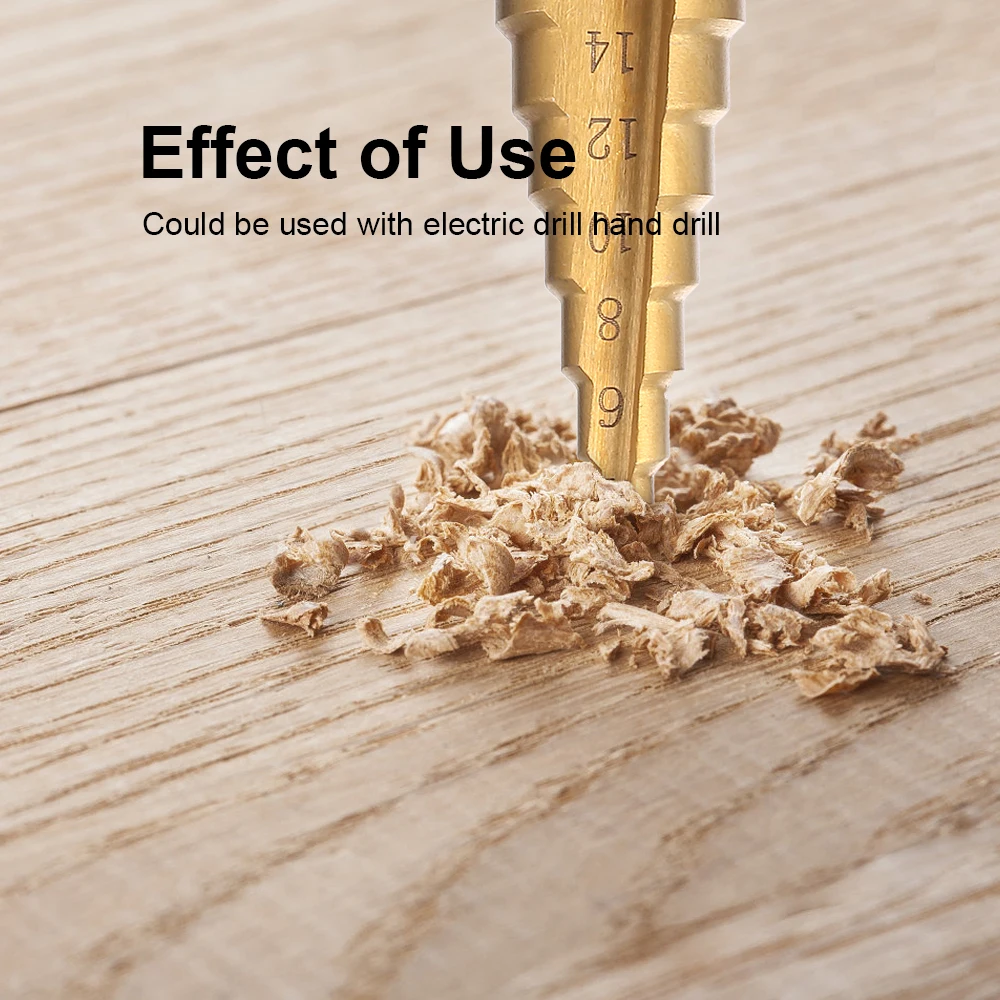 ★Титановая Высокоскоростная сталь с высокой мощностью и долговечностью при сверлении отверстий из пластика, алюминия, меди, нержавеющей стали и многих других типов листового металла.