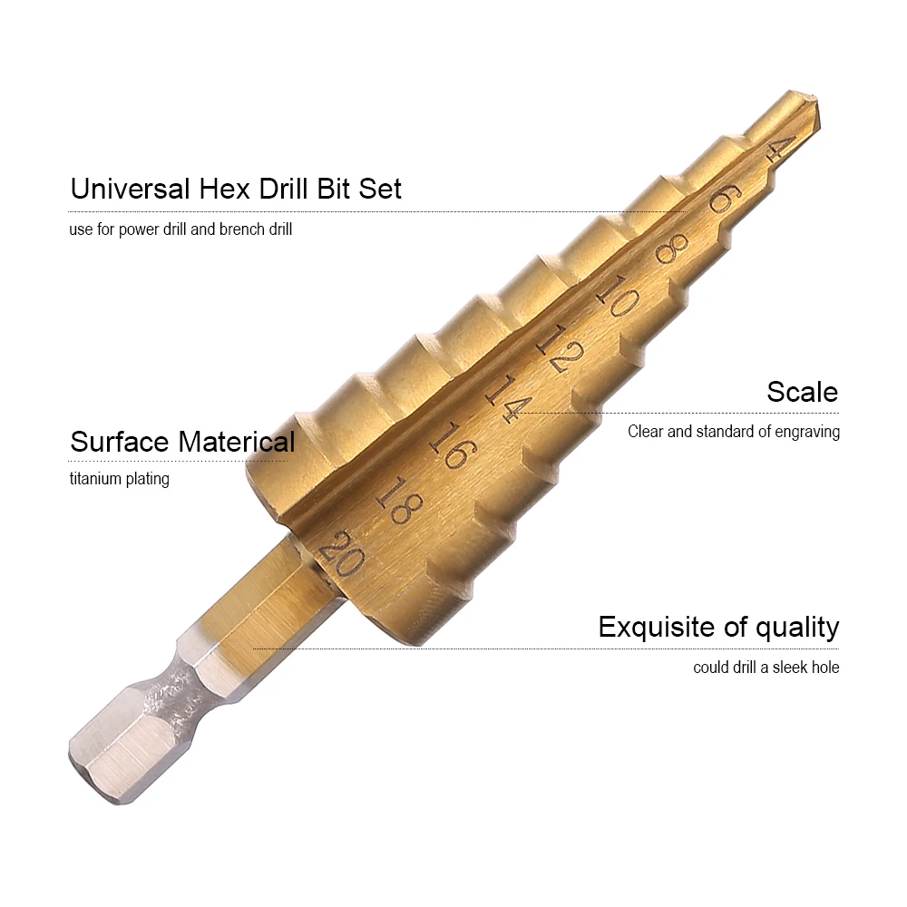 JelBo сверла конусные электроинструменты 4-20 мм ступенчатое сверло Металл HSS сталь конус Шаг сверло заточка отверстие столешница Инструменты Бит
