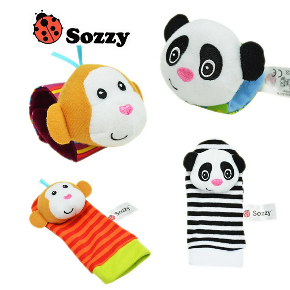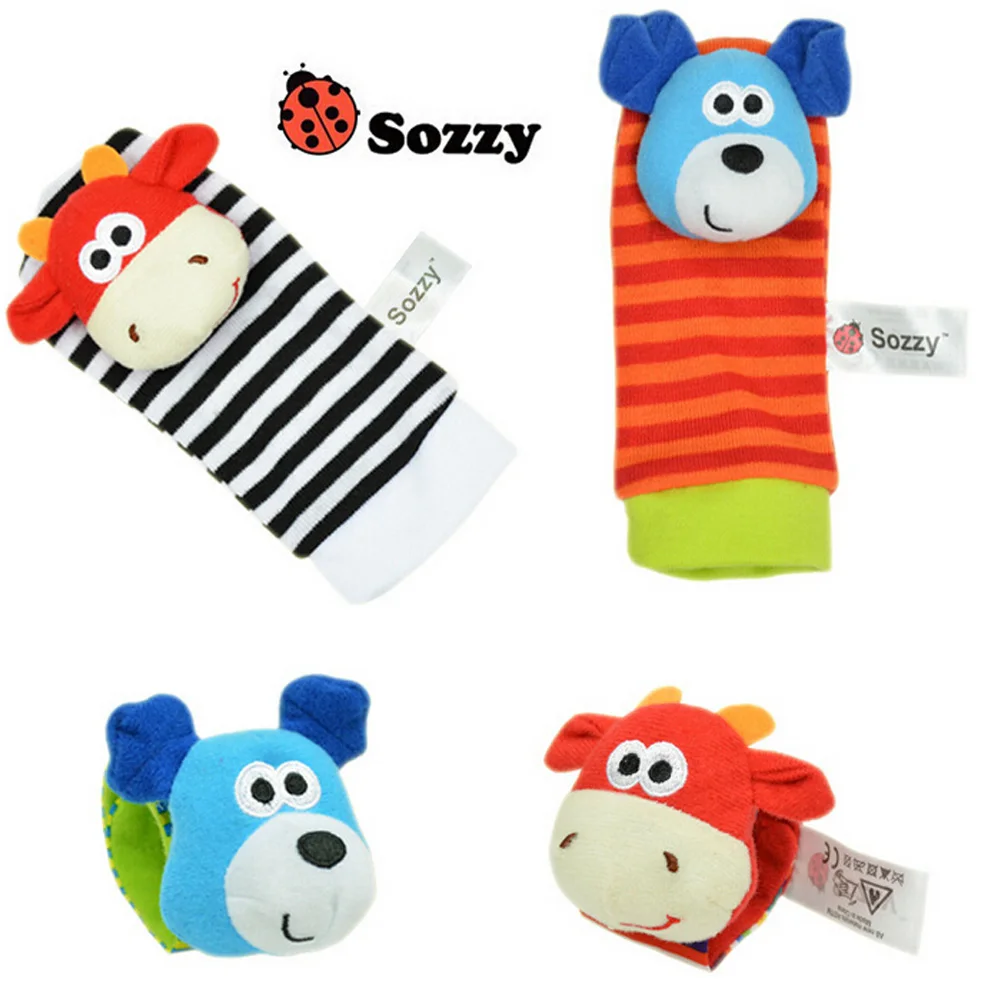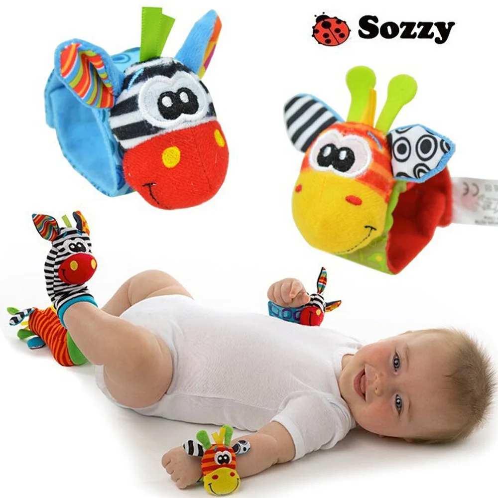 4 шт.лот, детские игрушки Sozzy, садовые погремушки и носки для ног в виде жуков, 4 вида (2 погремушки на запястье, 2 носки), подарок для девочек