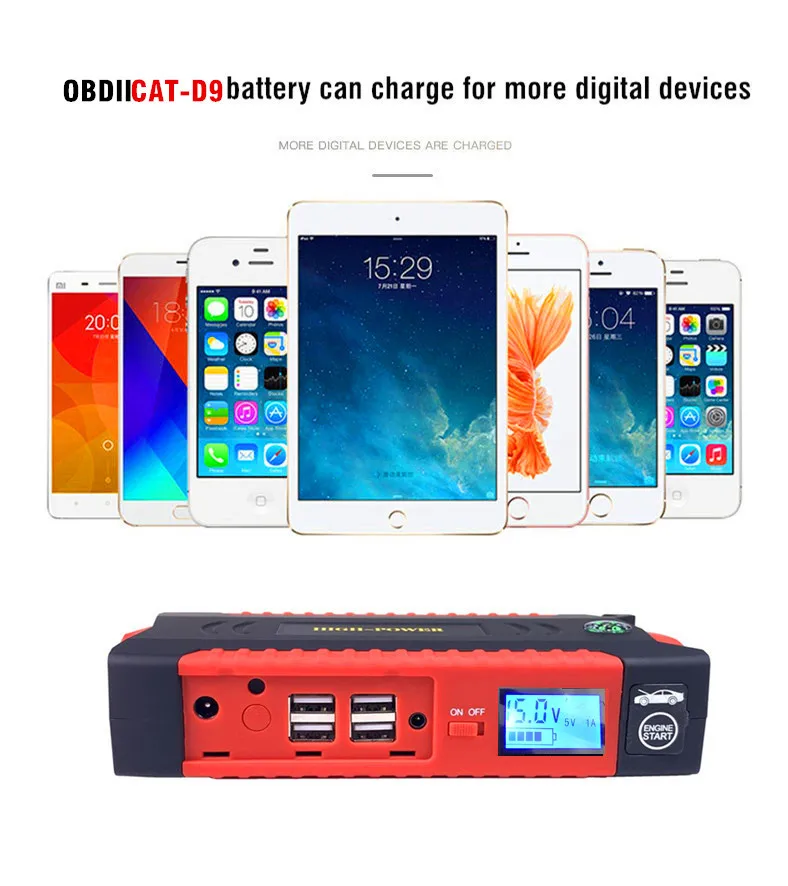 OBDIICAT-D16 D9 автомобильный стартер бустер с комплектом зарядного устройства автомобильный внешний аккумулятор светодиодный дисплей Мобильный аварийный