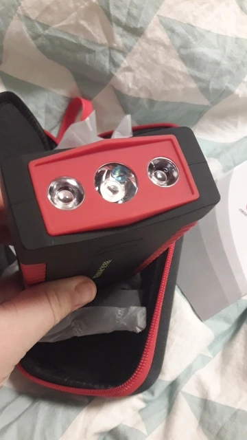 Добрый день! Заказ принес курье на дом. все выглядит очень хорошо, заряжен на 81%. удобный кейс. фонарик светится и мигает разными режимами и цветами, телефон заряжает, на машине пока не пробовал. Продавца рекомендую
