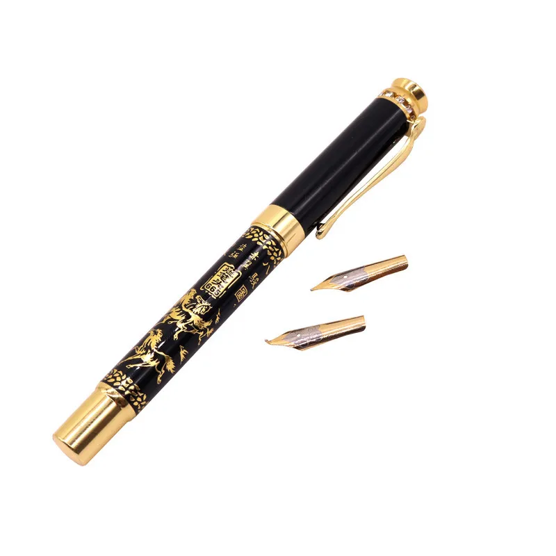 Ручка перьевая тонкая в китайском классическом стиле, карандаш с двумя перьями для письма и подписи, подарок для офиса