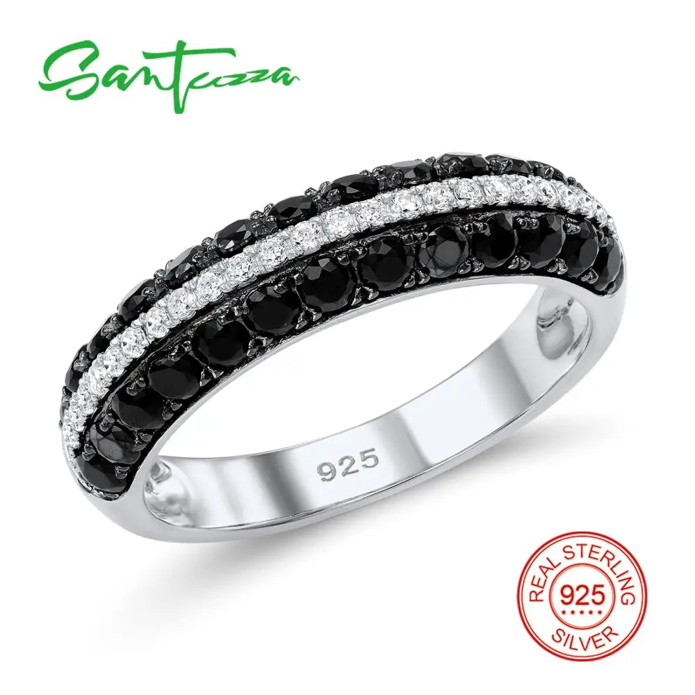 Женское серебряное кольцо SANTUZZA, из серебра 925 пробы с блестящей черной шпинелью и белым кубическим цирконием, модные ювелирные украшения для вечерние